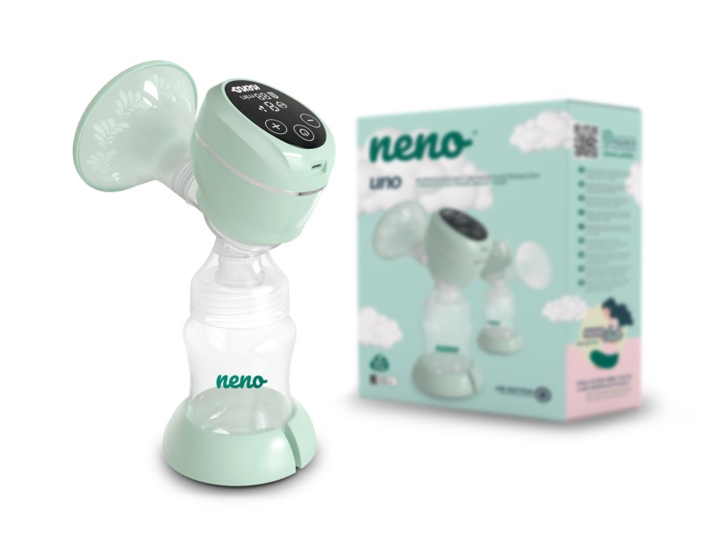 - Obsah balenia: odsávačka Neno Uno, fľaša na mlieko s cumlíkom a vrchnákom, stojan na fľašu, 2× ventil, vrecká na uskladnenie mlieka, prsný štít 24 mm, kryt prsných chráničov, USB typ-C kábel, návod na použitie