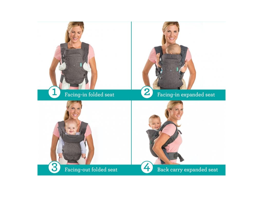 Unikátny nosič Flip 4v1 Convertible využijete od dojčenského do batoľacieho veku dieťaťa. Ponúka 4 spôsoby nosenia dieťaťa: