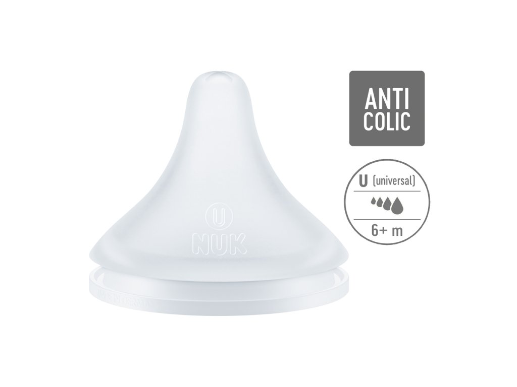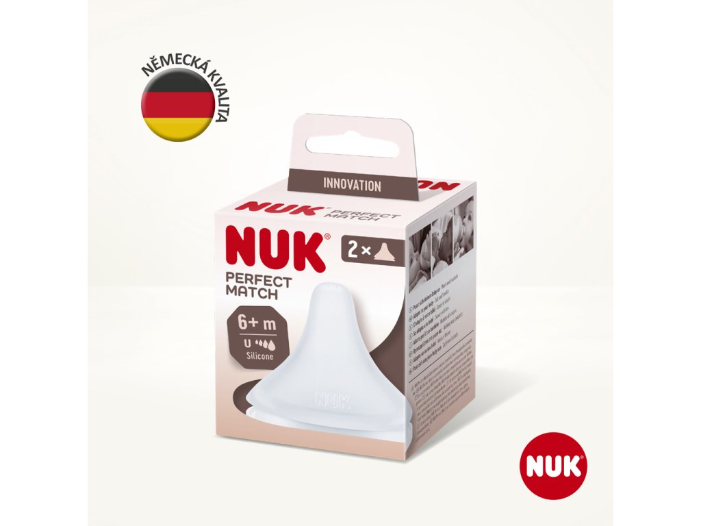 Cumlík NUK Perfect Match, vyrobený z mäkkého silikónu, neobsahuje BPA, veľkosť U (univerzálna), od 6 mesiacov, 2 kusy.