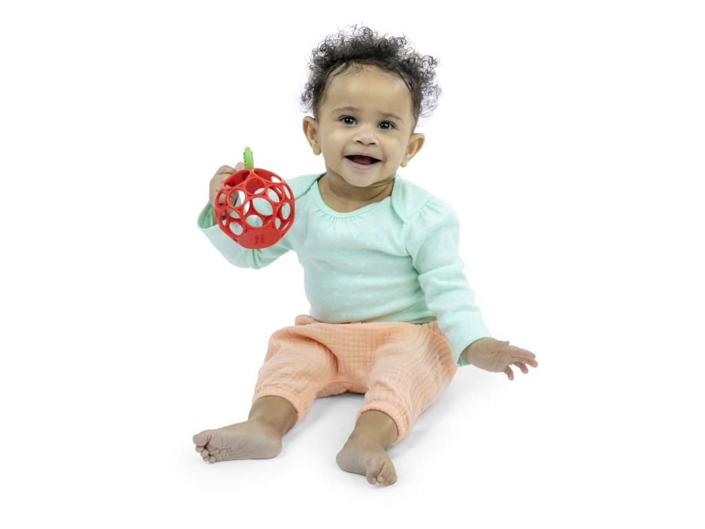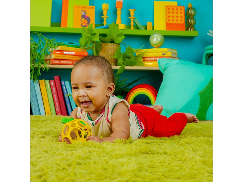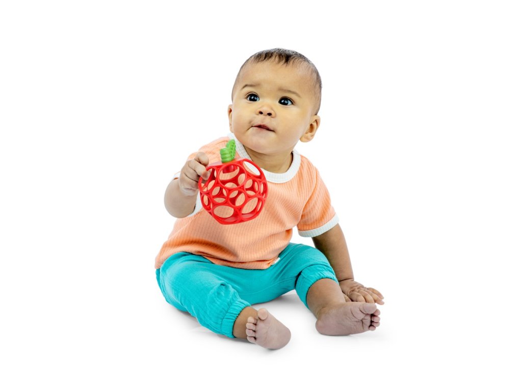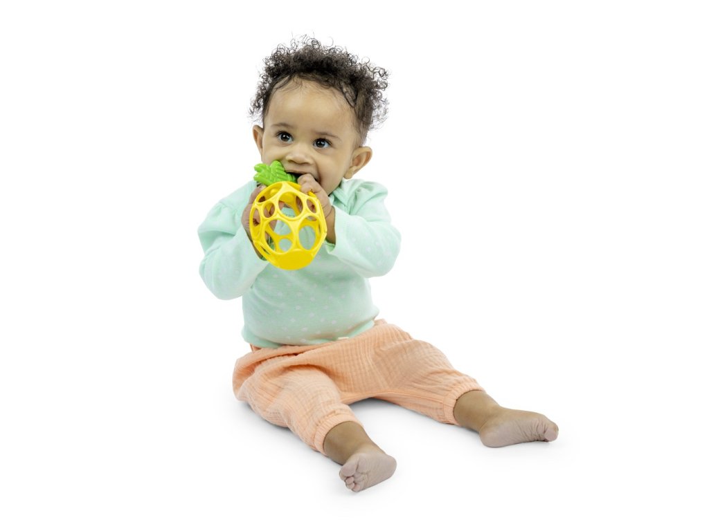 - Ľahko uchopiteľné ananásové hryzátko vyrobené z flexibilnej a odolnej technológie Oball od Bright Starts má otvory na prsty pre malé ručičky na držanie a hranie.