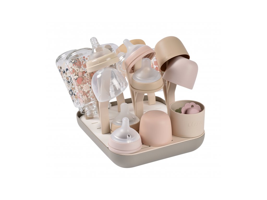 Variabilný stojan Beaba na sušenie dojčenských fliaš, hrnčekov, misiek, lyžičiek a doplnkov. Stojan má vyberateľné držiaky a umožňuje tak prispôsobiť jeho usporiadanie podľa typu a veľkosti riadu, ktorý na stojan potrebujete umiestniť. Odnímateľná základňa uľahčuje údržbu stojana a zároveň slúži na uloženie jednotlivých súčastí stojana, keď ho práve nepoužívate.