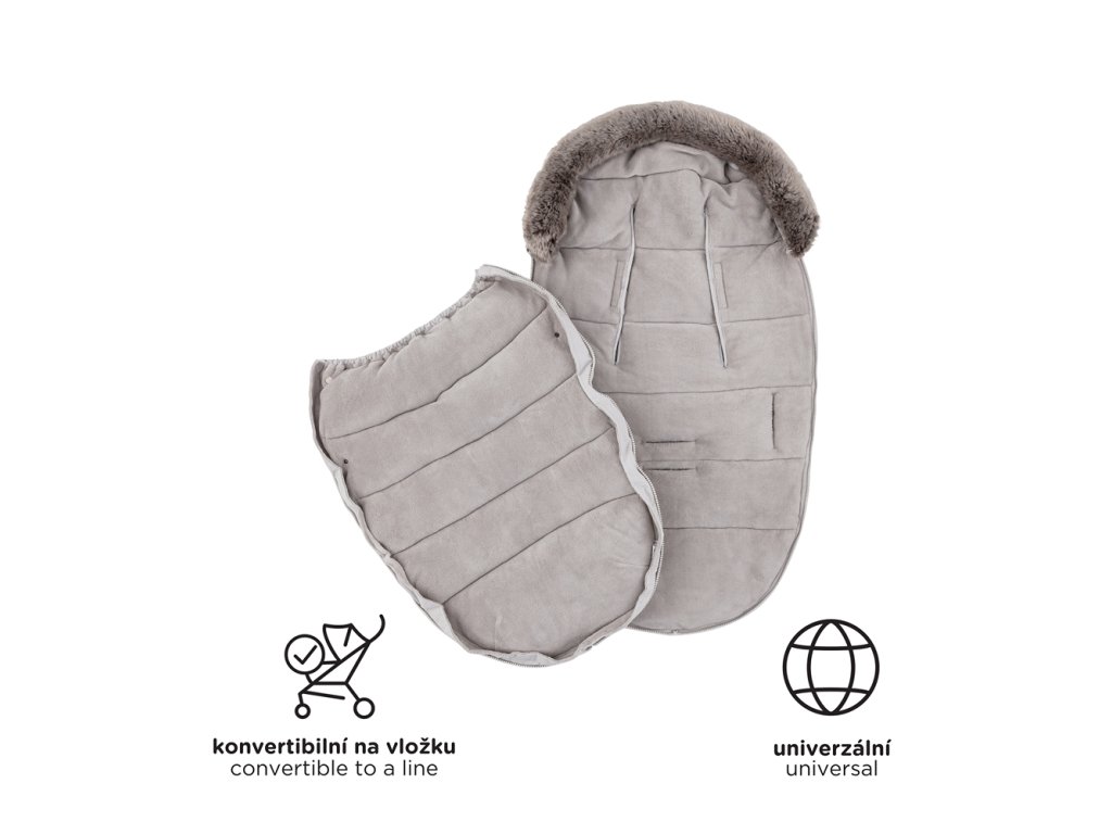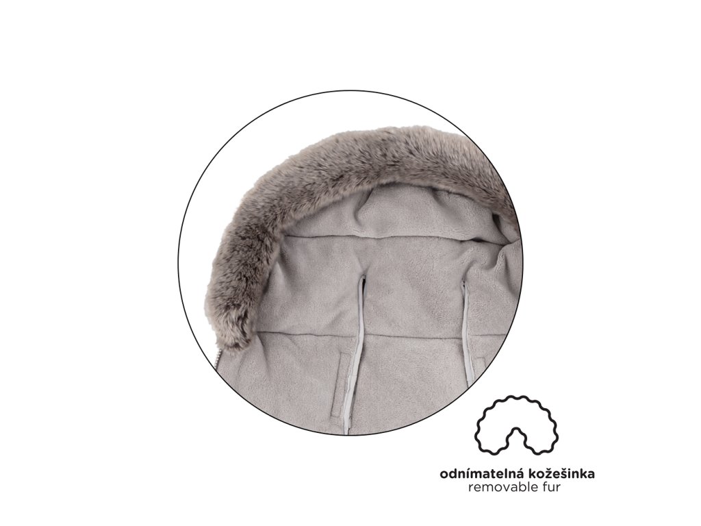 - Kožušinka sa na fusak prichytáva pomocou gombíkov a je možné veľmi jednoducho ju odňať a fusak oprať pri teplote 30°C.