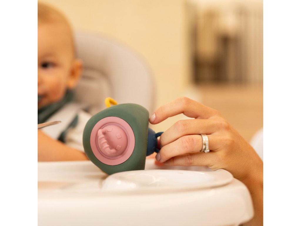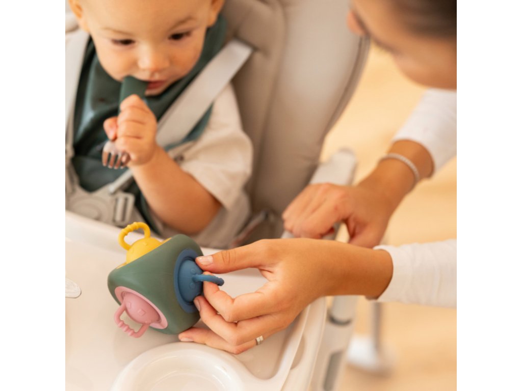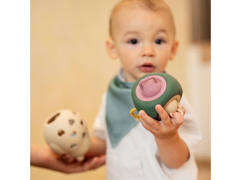 PETITE&MARS Hračka silikónová Pop Up Triangle Misty Green 10m+