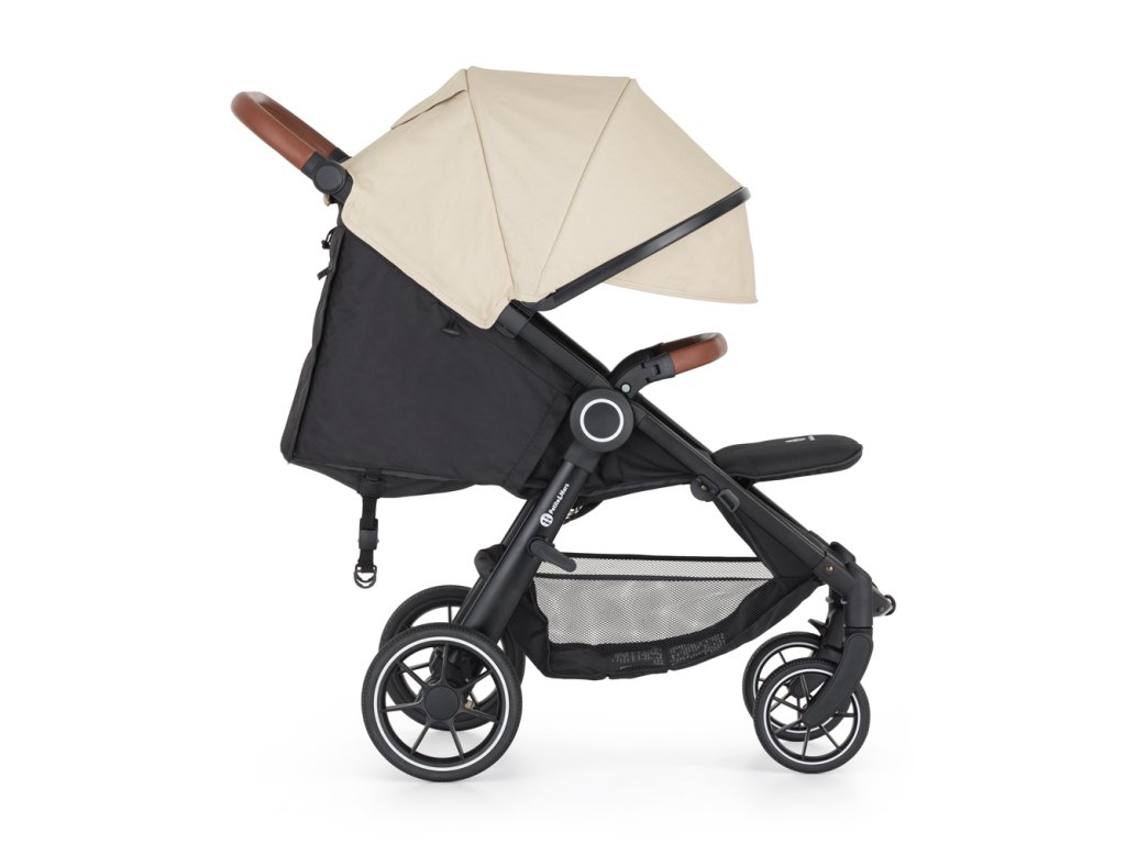 Športový kočík Street2 RWS Oak je vďaka menším kolieskam ľahší, celogumené kolieska majú ale napriek tomu výborné jazdné vlastnosti. Madlo a rukoväť sú v krásnej hnedej farbe.