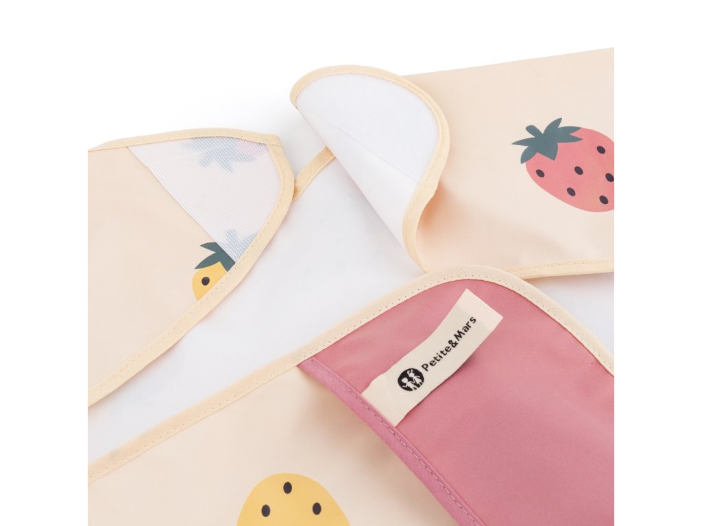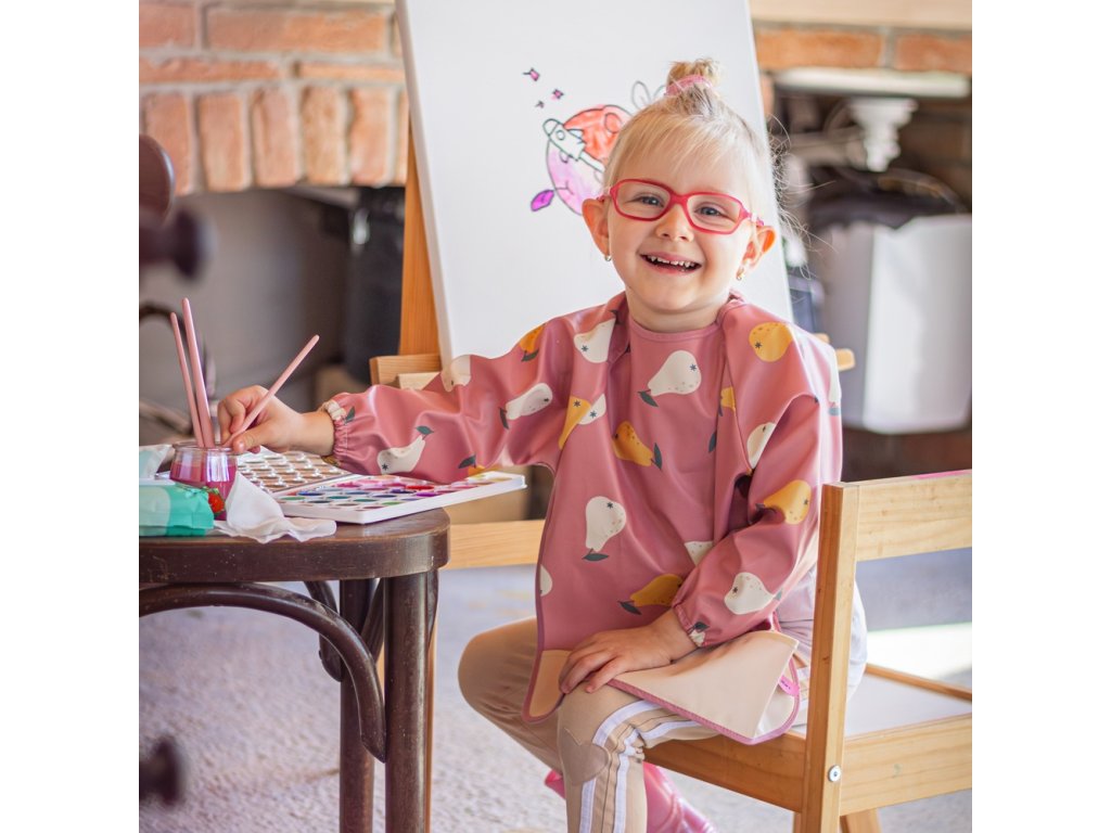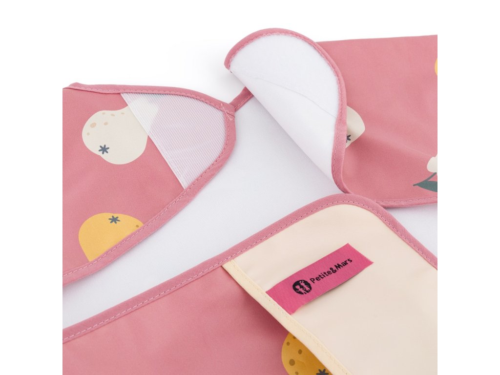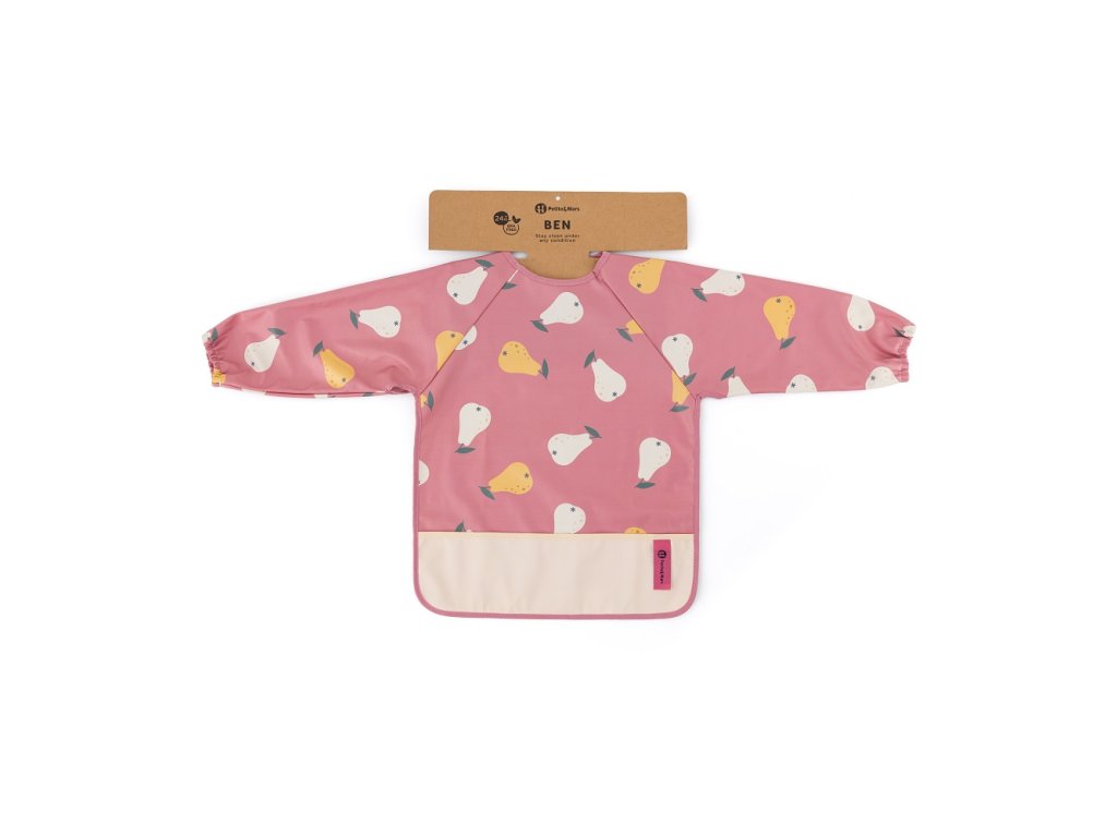 Pohodlný, nepremokavý podbradník s dlhým rukávom je vyrobený z rýchloschnúceho, bezpečného PU materiálu, úplne bez PVC a ftalátov. Predné vrecko na omrvinky zabezpečí poriadok a pohodlie pri kŕmení a dlhé rukávy s gumičkou chránia oblečenie pred zašpinením a namočením. Podbradník je veľmi jemný na dotyk a zapína sa na mäkký suchý zips. Možno ho používať nielen pri jedle, ale aj pri výtvarných prácach. Ak ho chcete udržať v čistote, po použití ho jednoducho utrite vlhkou handričkou.