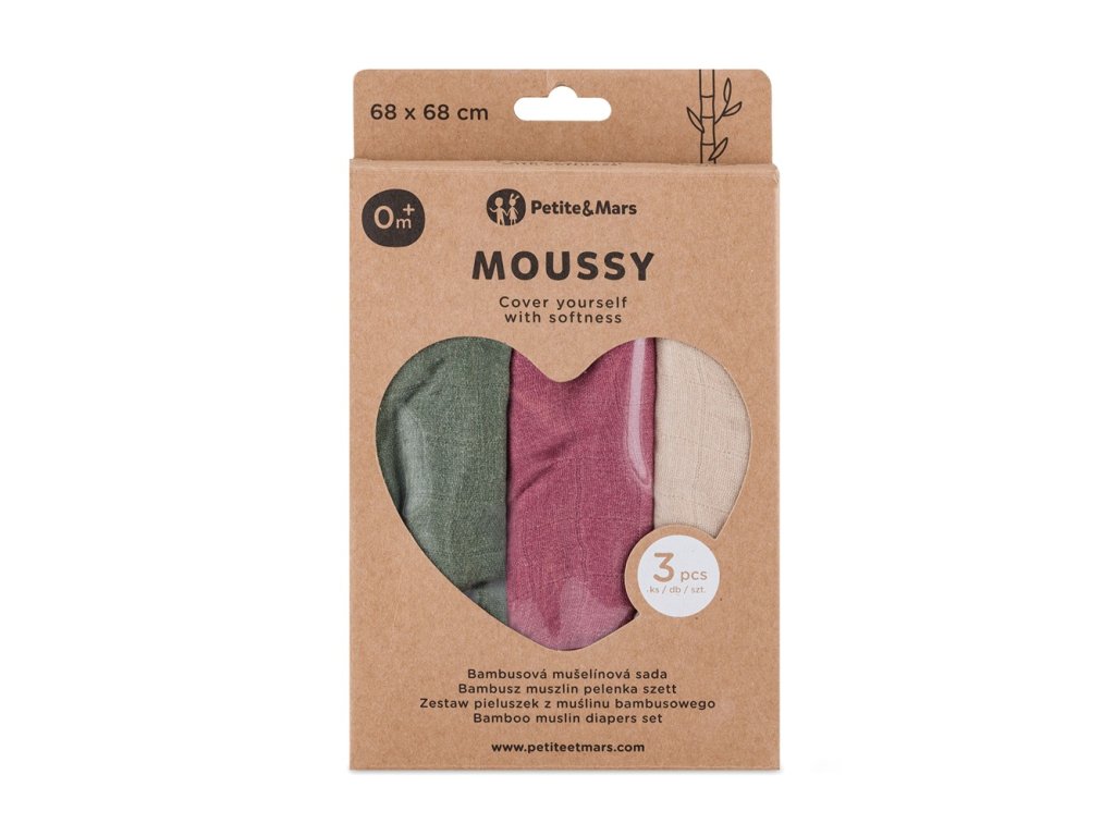 PETITE & MARS Sada plienok bambusová mušelínová 3ks Moussy Botanic Tones 68 x 68 cm