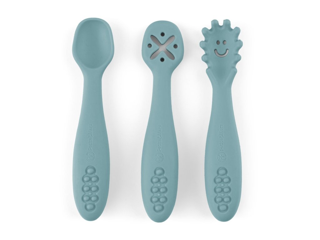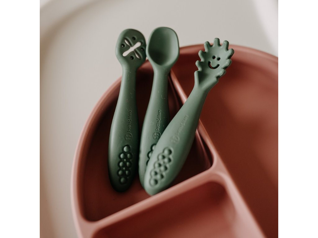 Set je vyrobený z potravinárskeho silikónu bez obsahu BPA. Vďaka tomu môže vaše dieťa s príborom jesť teplé, studené a rôzne konzistencie jedál. Vďaka pružnému silikónu sú lyžičky ideálne pre citlivé ďasná malého dieťaťa. Lyžičky sú vhodné pre deti od 6 mesiacov, ktoré sa zoznamujú s prvými príkrmami, a pre tie, ktoré sa už úspešne učia jesť samy. Zaoblené tvary a malé rozmery uľahčujú dieťatku ich uchopenie a papanie.