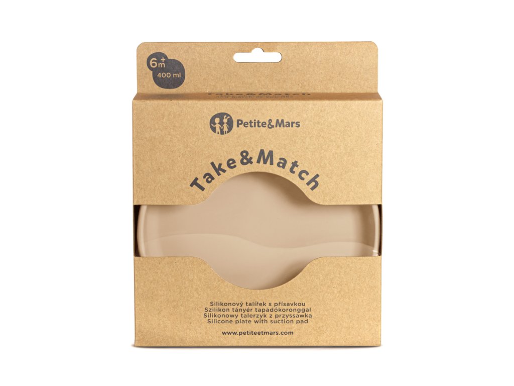 PETITE&MARS Tanier silikónový s prísavkou Take&Match Bitter Cocoa 6m+