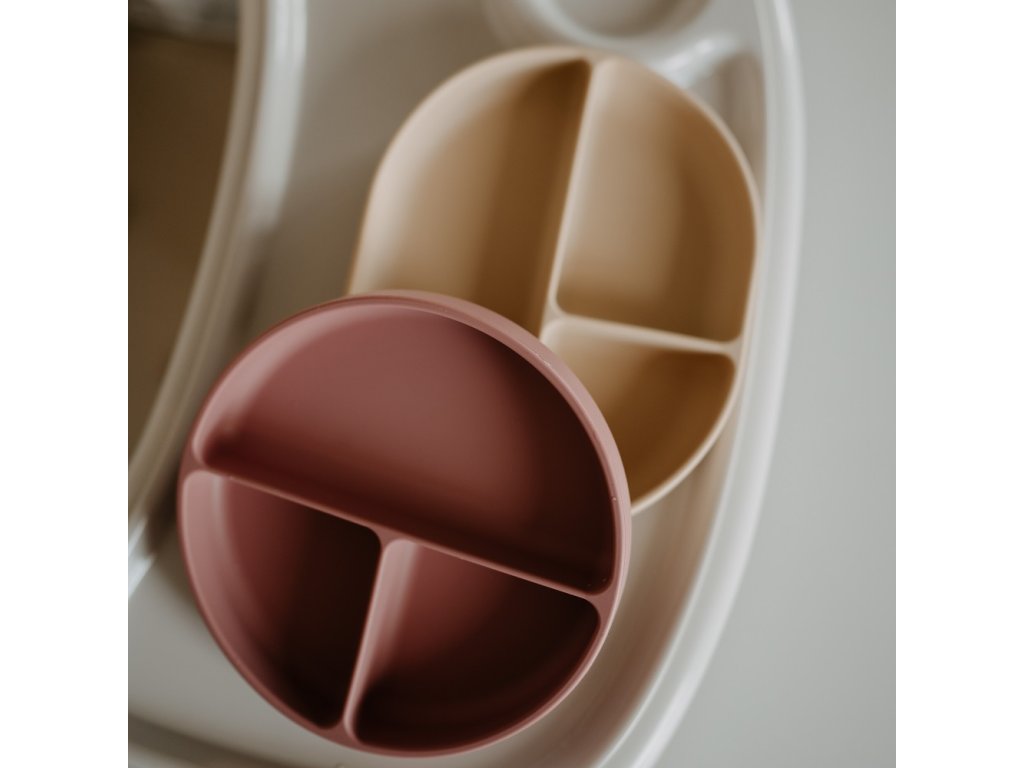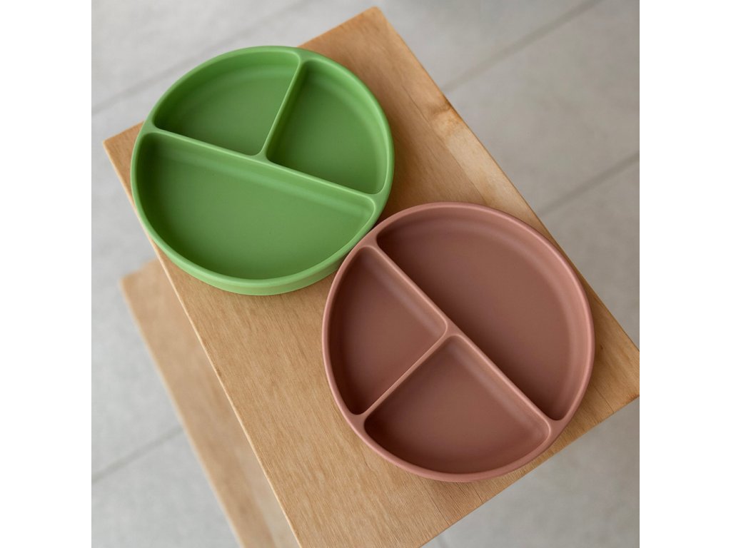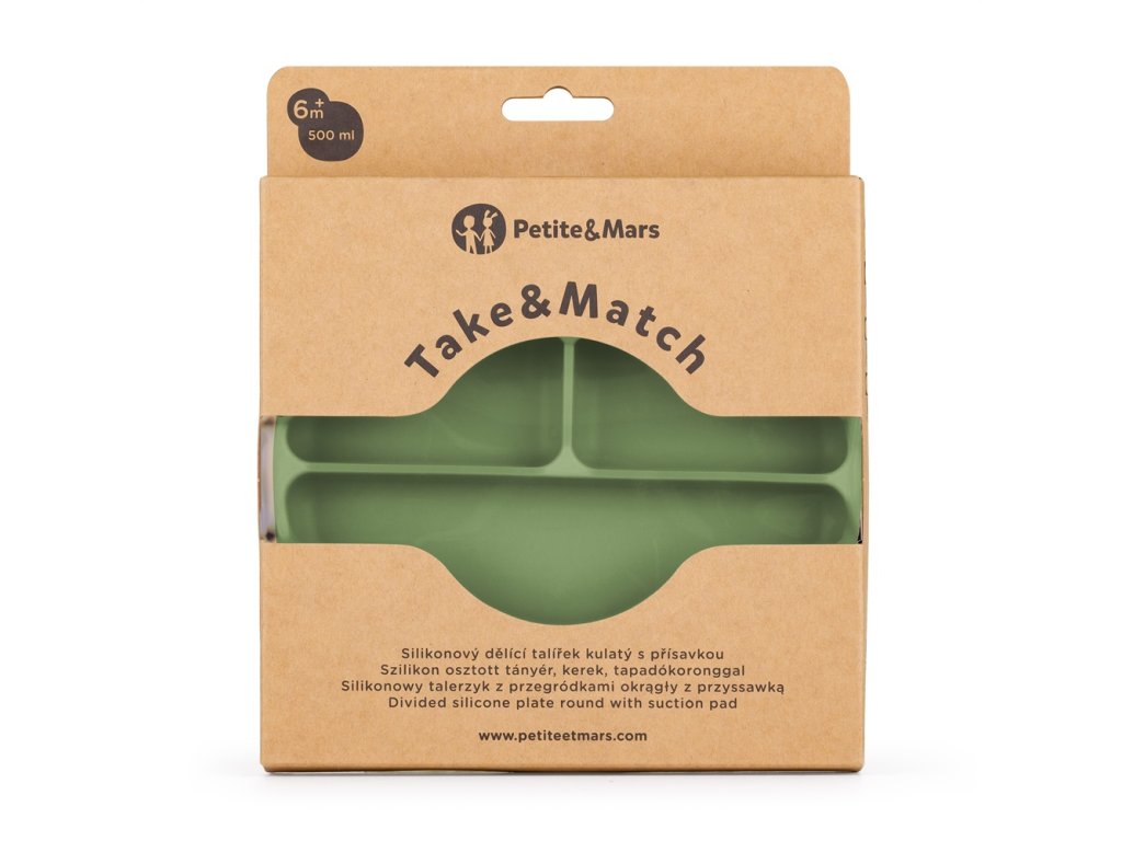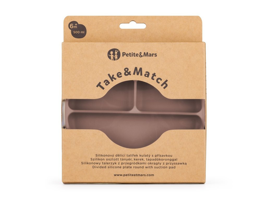 PETITE&MARS Tanierik silikónový deliaci okrúhly Take&Match Bitter Cocoa 6m+