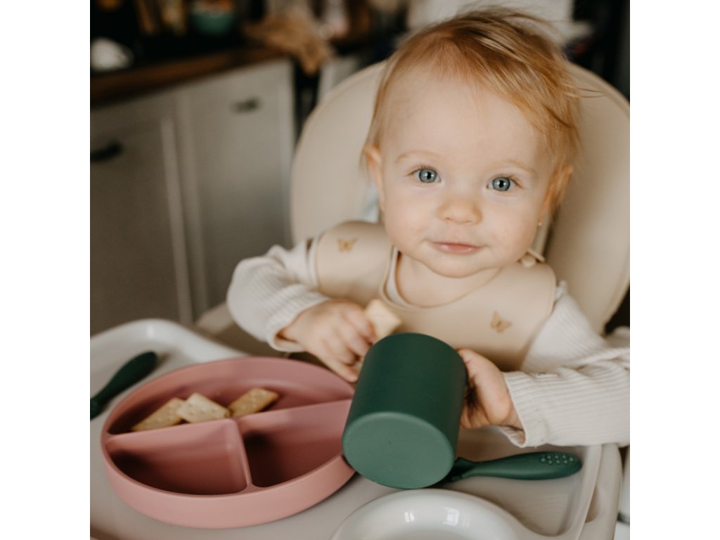 Praktický tanier je celý vyrobený z potravinárskeho silikónu bez obsahu BPA. Vďaka tomu ho možno bezpečne používať na všetky potraviny, teplé aj studené, a jedlo v ňom možno bez obáv ohrievať v mikrovlnnej rúre alebo uchovávať v chladničke. Vďaka odolnému a mäkkému silikónu sa nemusíte obávať, že sa tanier rozbije, odštiepi alebo zdeformuje - môžete ho nepoškodený používať dlhý čas. Je vhodný pre deti od 6 mesiacov, ktoré sa zoznamujú s rozšírenou stravou, a pre tie, ktoré sa už úspešne učia jesť samy.