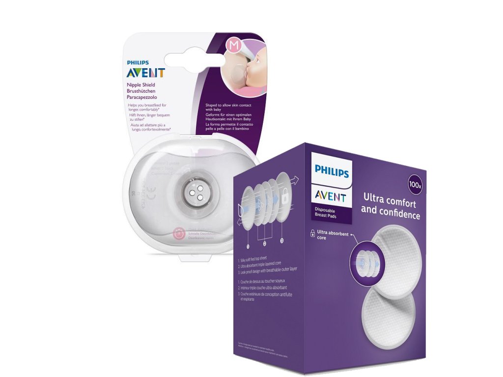 Philips AVENT Chránič prsných bradaviek M + ster. obal + Vložky do podprsenky jednorazové 100 ks