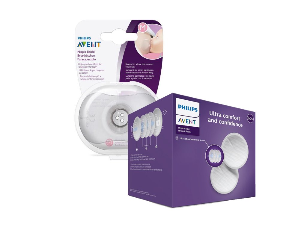 Philips AVENT Chránič prsných bradaviek M + ster. obal + Vložky do podprsenky jednorazové 60 ks