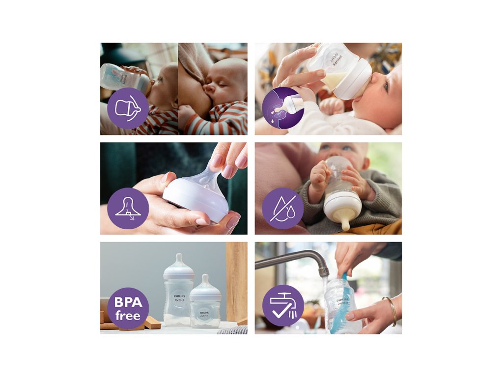 Cumlík Natural Response funguje v súlade s prirodzeným rytmom kŕmenia dieťaťa, takže môžete ľahko kombinovať dojčenie a kŕmenie z fľaše. Má jedinečný otvor, ktorý uvoľňuje mlieko len keď dieťa aktívne pije. Takže, keď si dieťa urobí prestávku na prehltnutie a nadýchnutie, pozastaví sa aj tok mlieka.
