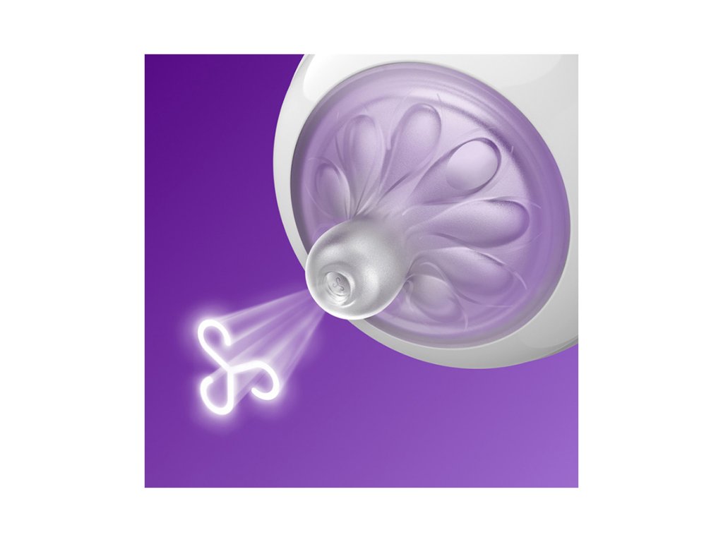 Široký, mäkký a pružný cumlík je navrhnutý tak, aby napodobnil tvar a pocit z prsníka a pomohol dieťaťu pohodlne sa prisať a kŕmiť.