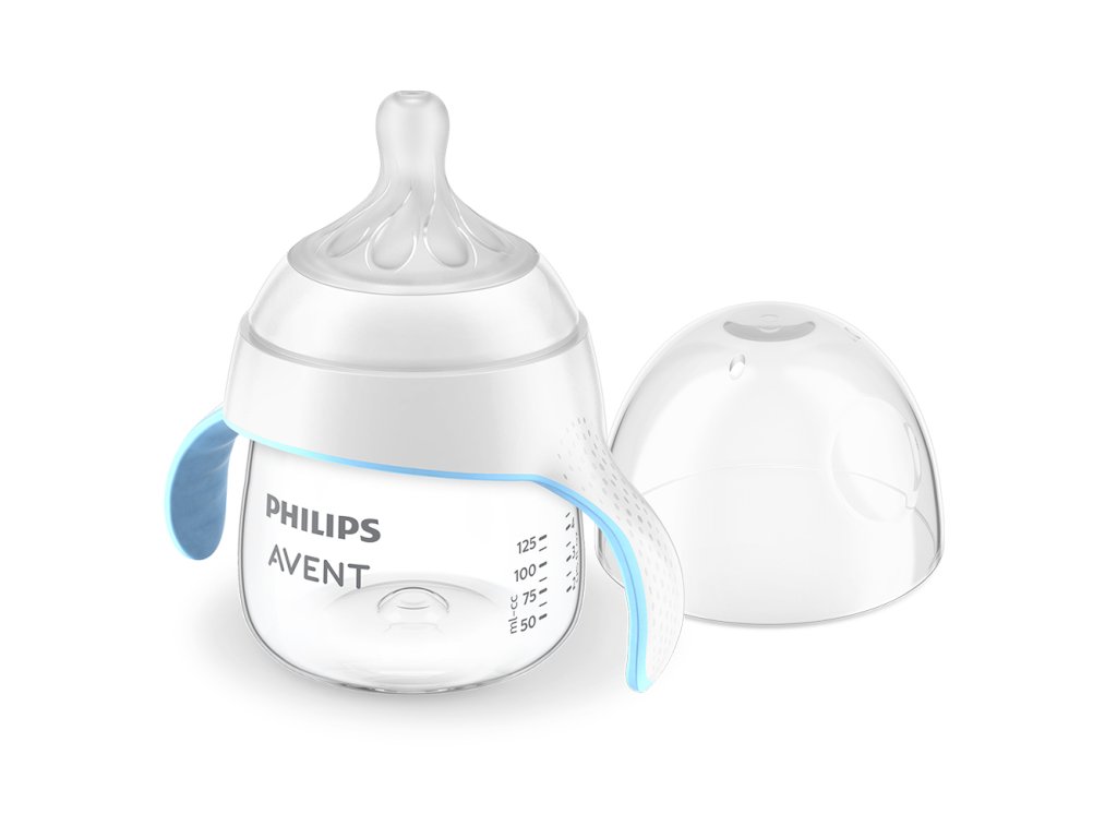 Fľaša na učenie Natural uľahčí vášmu dieťaťu zvládnuť prvý hrnček. Pohodlné držadlá pomáhajú dieťaťu samostatne uchopiť fľašu a zároveň piť zo známeho cumlíka.