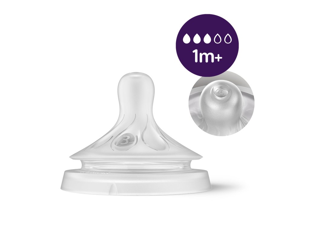 Každé dieťa sa kŕmi inak a vyvíja sa vlastným spôsobom. vlastným tempom. Navrhli sme rôzne rýchlosti prietoku, aby ste mohli nájsť ten správny pre vaše dieťa a mohli ste si fľašu tak prispôsobiť. Všetky Cumlíky Natural Response sú vyrobené vyrobené z mäkkého silikónu.