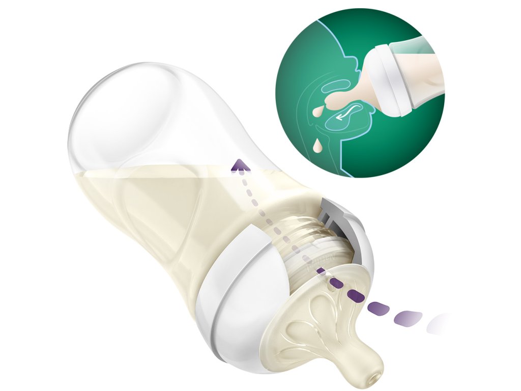 Cumlík Natural Response uvoľňuje mlieko len vtedy, keď dieťa aktívne pije. To umožňuje dieťaťu piť, prehĺtať a dýchať v prirodzenom rytme, ako na prsníku. Vďaka tomu môžete ľahko kombinovať dojčenie a kŕmenie z fľaše.