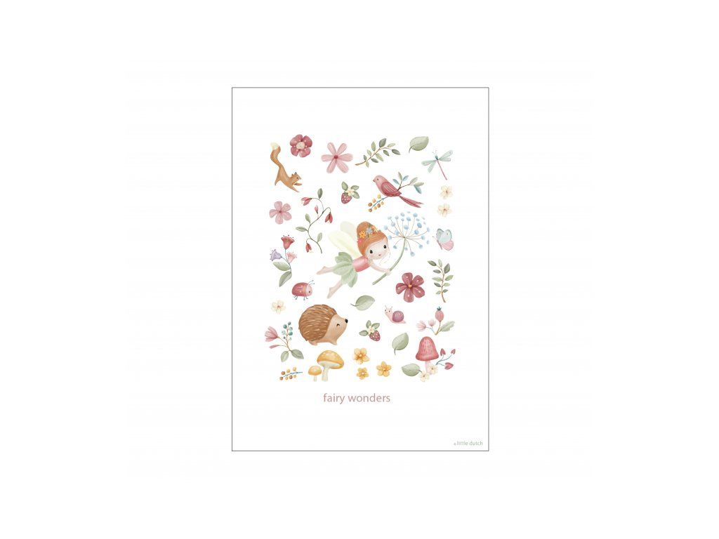 Plagát je súčasťou dizajnovej kolekcie hračiek, textilu a doplnkov Little Dutch Fairy Garden inšpirovanej životom na záhrade.