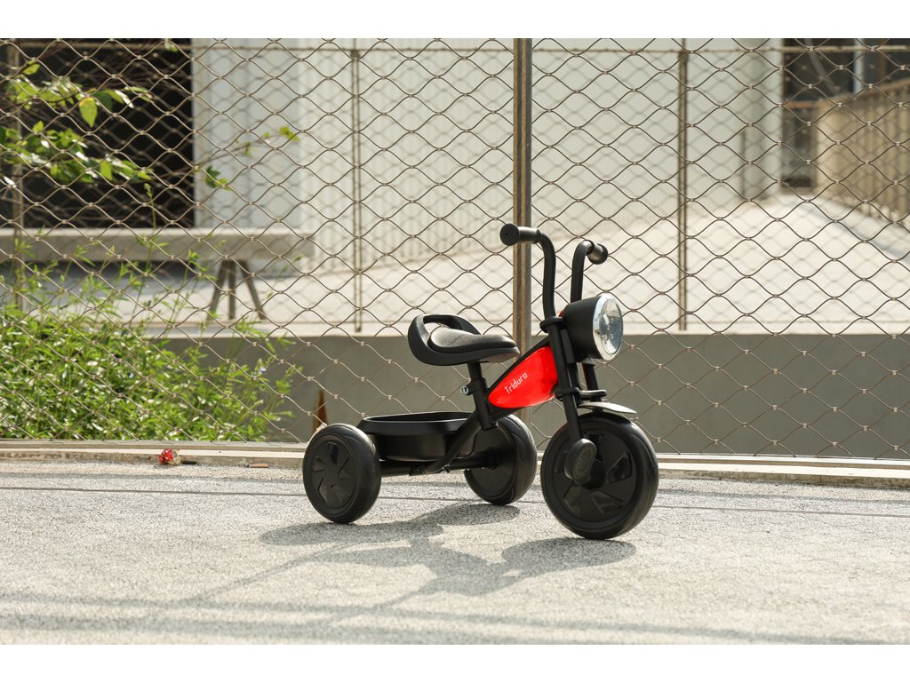 - Motorkársky dizajn: Trojkolka má jedinečný dizajn motorky, ktorý jej dodáva štýlový vzhľad. Motorková palivová nádrž prispieva k dizajnovému efektu a robí trojkolku skutočne jedinečnou.