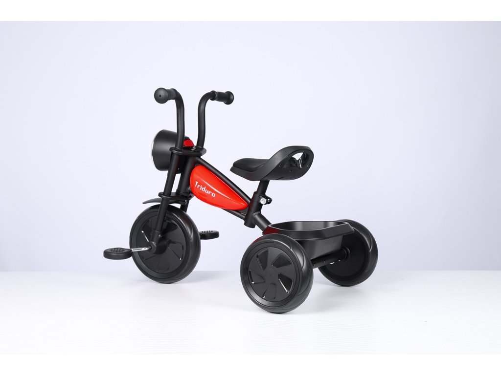 - Pevný oceľový rám: Kompletný oceľový rám zaisťuje vysokú odolnosť a stabilitu, čo robí trojkolku bezpečnou aj pri aktívnom používaní.