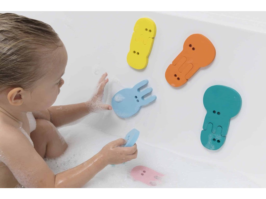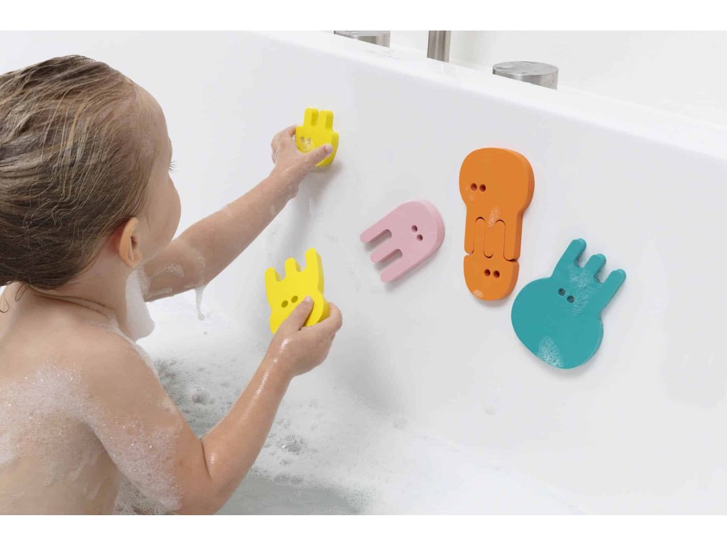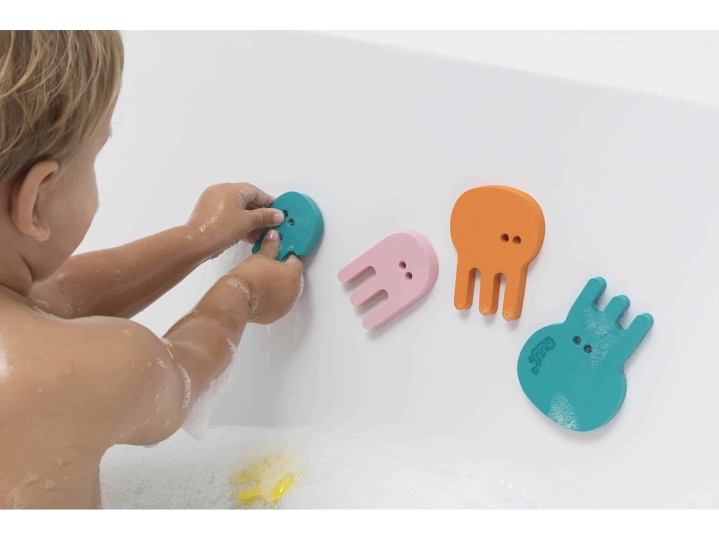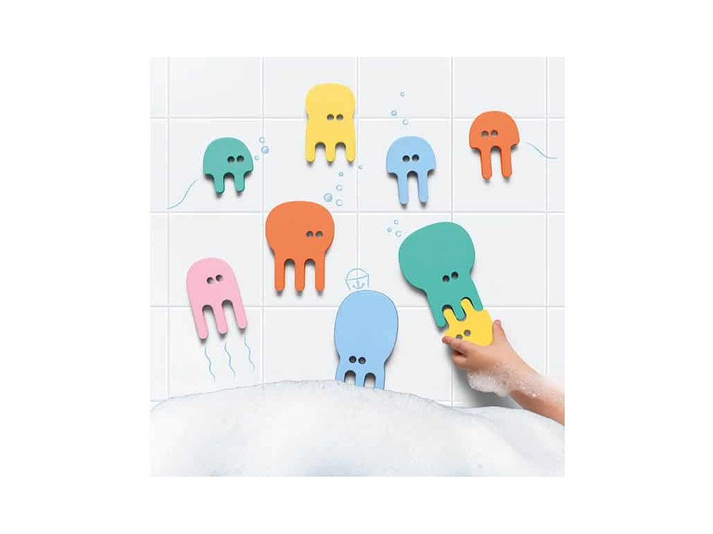 Spájanie tvarov rôznych medúz pomáha dieťatku zdokonaliť jemnú motoriku. Všetky tvary plávajú na vode, namokro ich jednoducho "nalepíte" na vaňu a vytvárate tie najrôznejšie kreácie.