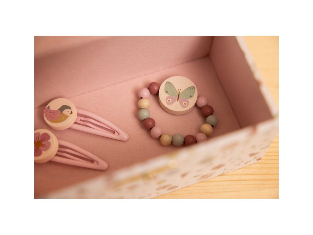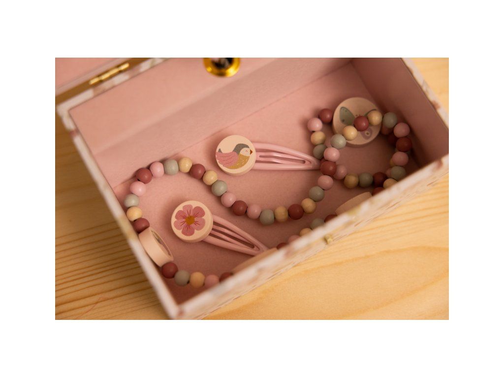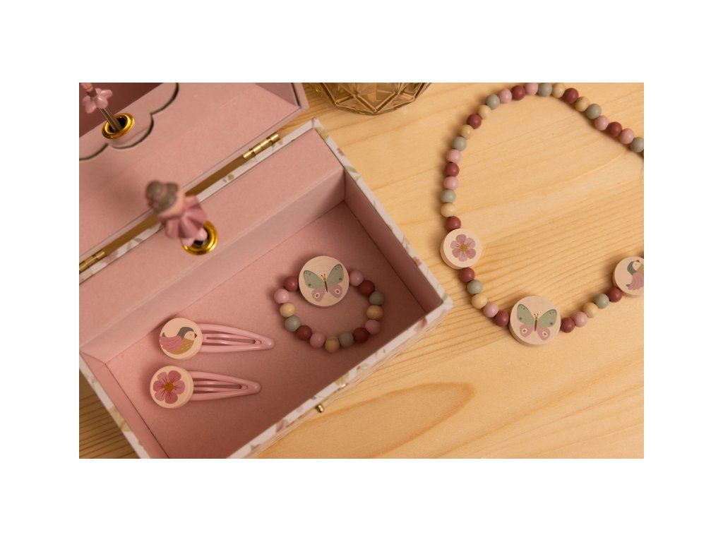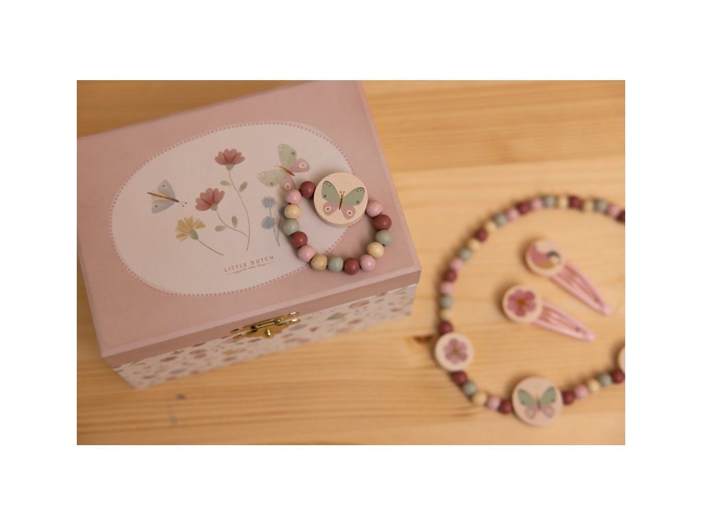 Šperky aj hudobné šperkovnice sú súčasťou dizajnovej kolekcie hračiek a doplnkov Little Dutch Kvety a motýle.