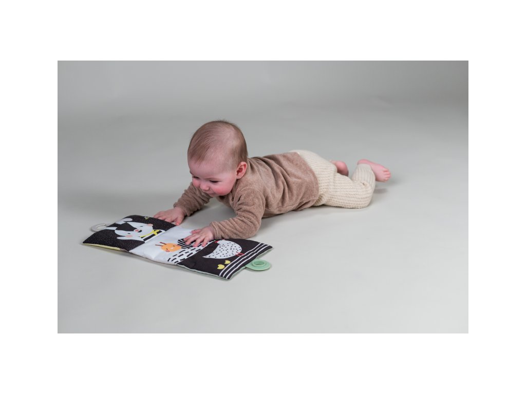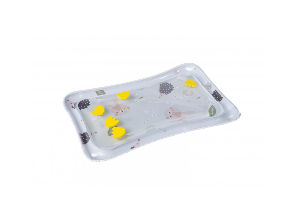 Vankúšik z mäkkého, príjemného materiálu je špeciálne navrhnutý, aby podporoval hranie dieťaťa na brušku.Obojstranná šuštiaca kniha je ideálna pre postavenie pred dieťa v polohe na brušku. Množstvo obrázkov, ktoré kniha ponúka, umožňuje rodičom obrázky vymieňať a udržiavať tak dlhšie pozornosť dieťaťa. Hru na brušku podporuje aj vodná hracia podložka s výraznými žltými kvetmi, ktoré sa vo vode pri stlačení podložky pohybujú a upútavajú tak pozornosť dieťaťa.