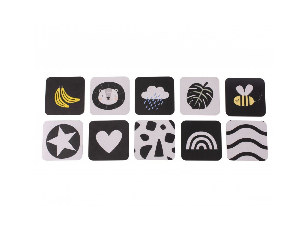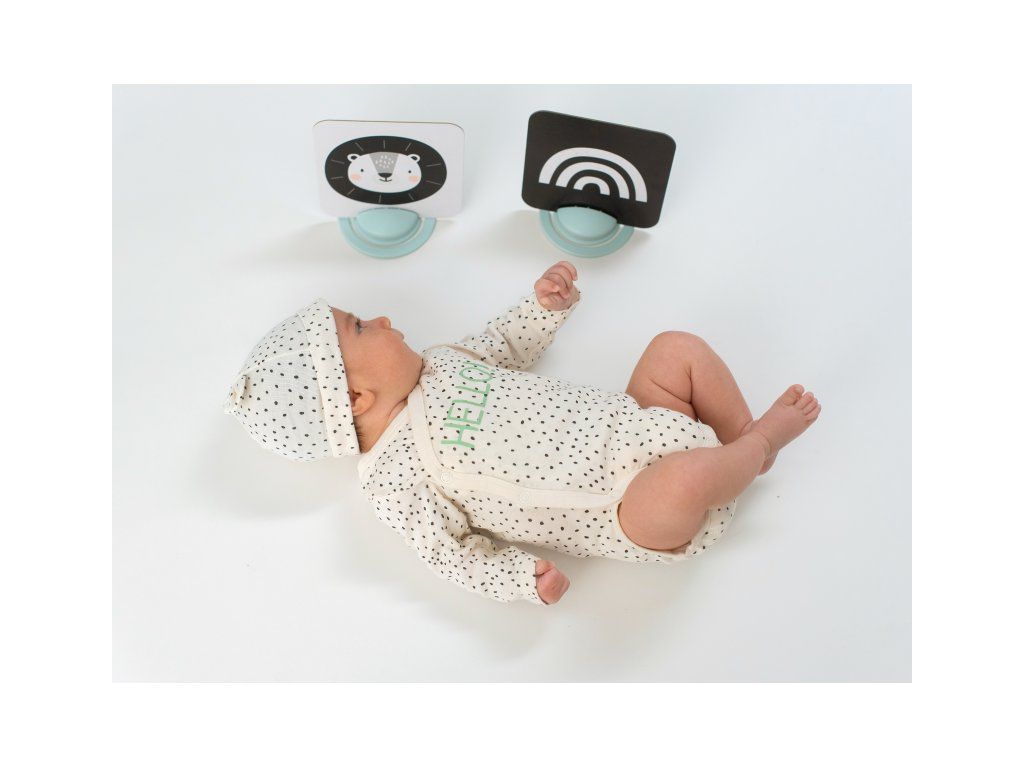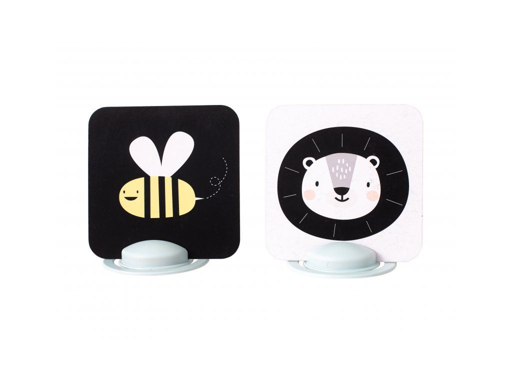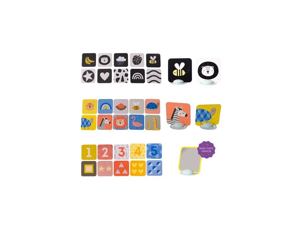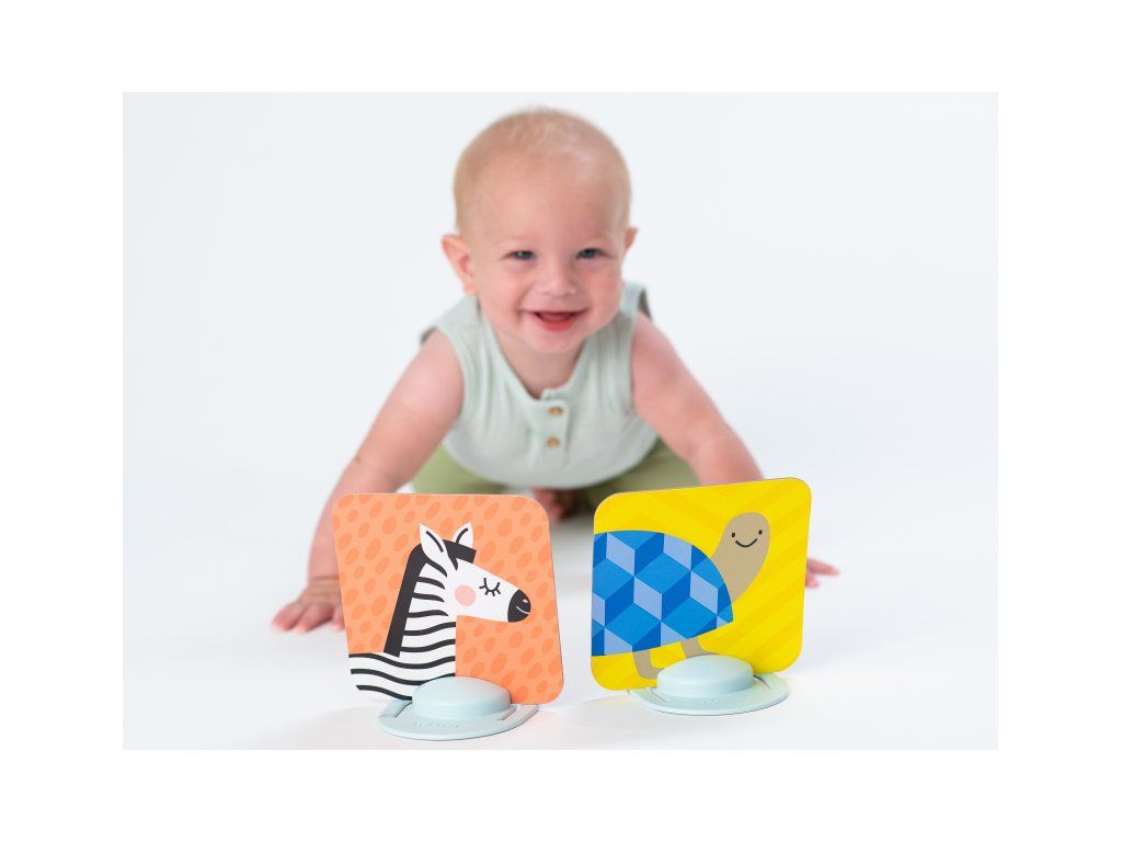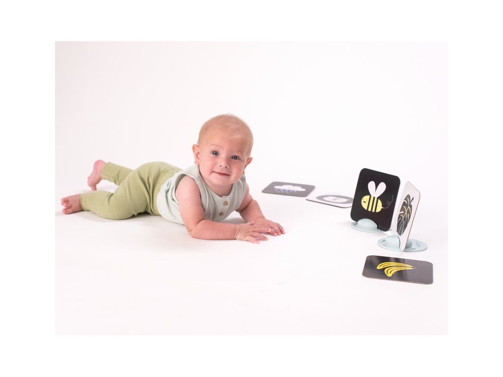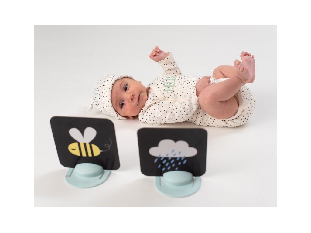 Unikátna sada obrázkov s dvoma stojanmi zabaví vaše dieťa a zároveň pomáha rozvíjať jeho zrak a jemnú motoriku od narodenia. Vďaka stojančekom obrázky môžete postaviť pred dieťa v polohe na brušku. Množstvo obrázkov, ktoré sada ponúka, umožňuje rodičom obrázky vymieňať a udržiavať tak dlhšie pozornosť dieťaťa.