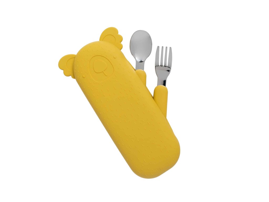 Rodina Cotton Cloud sa rozrastá! Koala Zoe je najnovší a milý prírastok. Urobte pre svoje deti z jedenia ešte zábavnejšiu zábavu s touto roztomilou koalou. Vďaka praktickému silikónovému púzdru je táto súprava ideálna na stolovanie doma alebo na cestách. Každá súprava sa dodáva so silikónovým puzdrom, aby bol príbor bezpečný a hygienický - ideálne pre každú detskú tašku. Úchytné drážky zabraňujú skĺznutiu príboru do misy. Každý riad má zaoblené hrany, aby bola zaistená bezpečnosť vášho dieťaťa počas jedla. Vidlička a lyžica sú vyrobené zo 100% vysoko kvalitnej nehrdzavejúcej ocele a potravinárskeho silikónu. Okrem toho je táto sada vhodná aj do umývačky riadu, je netoxická a neobsahuje žiadne BPA.