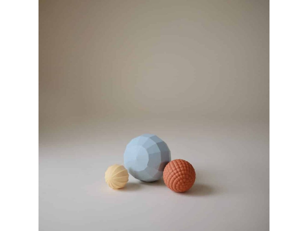 Každá silikónová guľa má inú farbu a textúru, ktorá stimuluje hmatové skúmanie a povzbudzuje deti, aby cítili, stláčali a objavovali nové vnemy. Vnorený dizajn umožňuje gule stohovať do seba, čím podporuje priestorové povedomie a koordináciu.