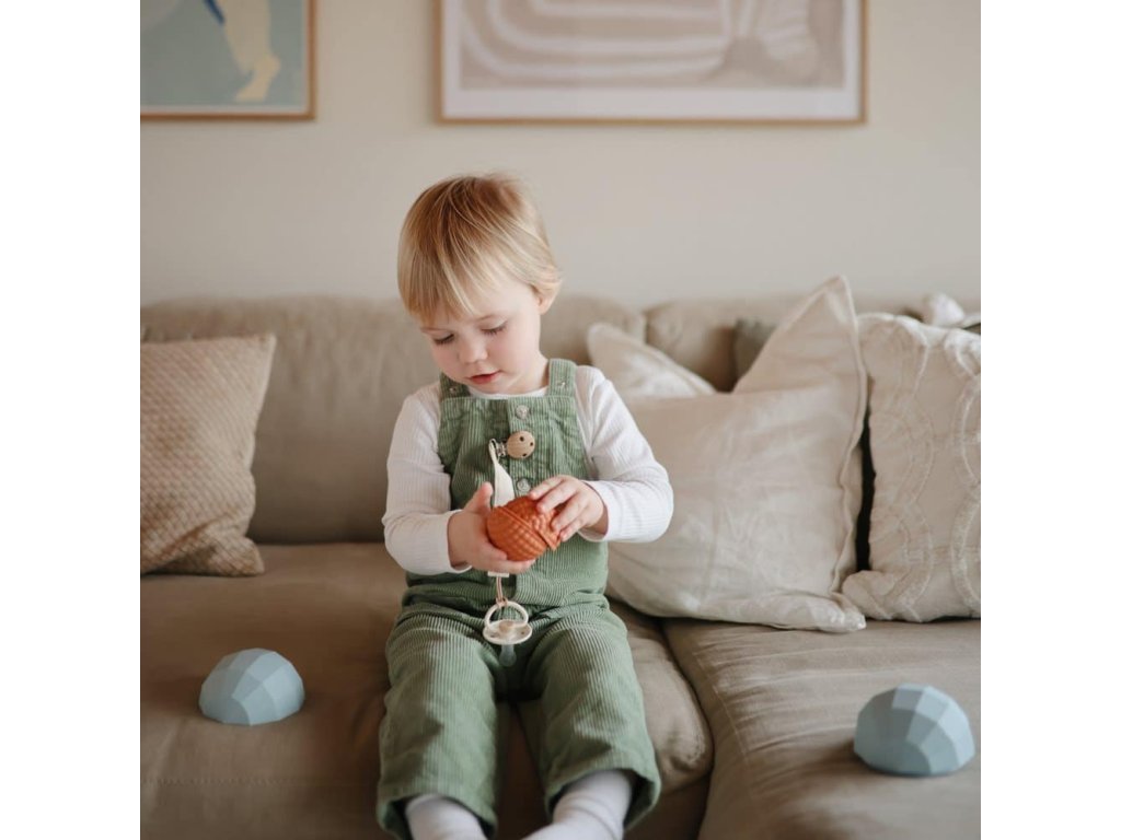 Najmenší z troch vydáva jemný hrkajúci zvuk, ktorý je pre detské ušká upokojujúci a zároveň vzrušujúci. Vyrobená z mäkkého, netoxického, potravinárskeho silikónu, táto hračka je bezpečná a ľahko sa čistí, takže je ideálna na doma alebo na cesty.