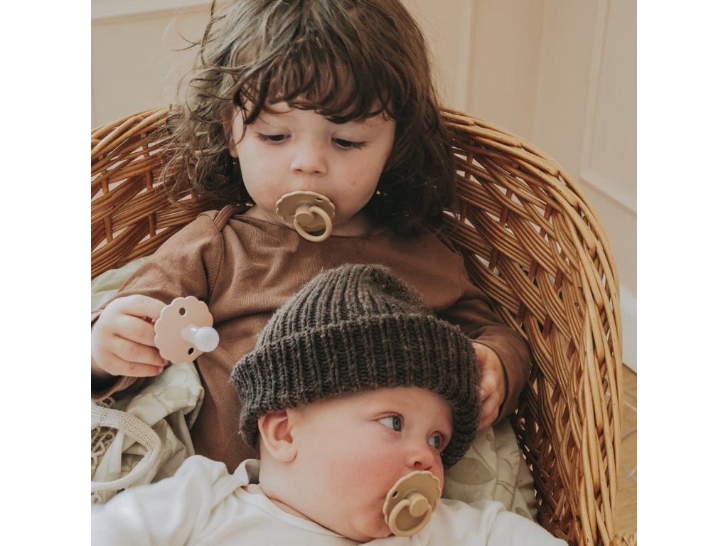 Šesťbalenie „Cinnamon Charm“ od FRIGG, balenie pozostávajúce zo 6 okrúhlych cumlíkov v teplých farbách, ktoré dokonale ladia s paletou prírody. Vyberte si „Cinnamon Charm“ pre útulnú eleganciu a nadčasový šarm. Jedným z cumlíkov je cumlík FRIGG Night, má funkciu svietenia v tme. Rukoväť a gombík budú svietiť v tme a vyriešia problém nájsť a umiestniť cumlík vášho dieťaťa uprostred noci. Funkcia nočného žiarenia je jemne jasná a nepoškodí oči vášho dieťaťa a cumlík môžete ľahko nájsť bez zapnutia svetla. Podržte cumlík vo svetle, aby ste aktivovali funkciu žiary.