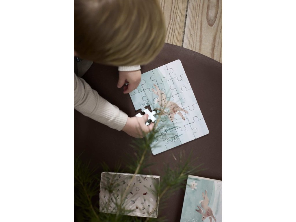 Táto sada obsahuje štyri nádherné puzzle so zimnou tematikou, z ktorých každé je uzavreté vo svojej vlastnej kompaktnej škatuľke, a tvorí štyri dokonalé darčeky z adventného kalendára alebo mikulášskej ponožky.