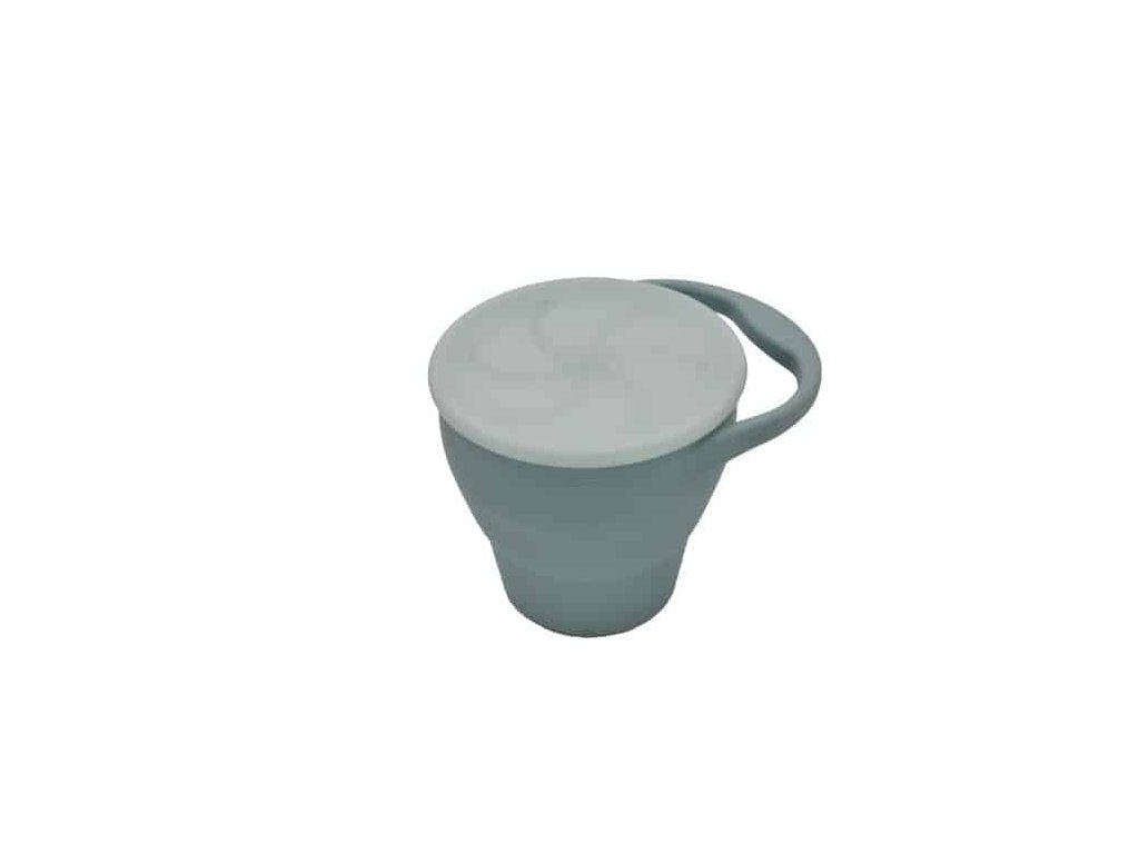Silikónový snack - hrnček Cotton Cloud je vďaka uzatvárateľnému vrchnému viečku skvelým pomocníkom na cesty. Váš drobček si môže vychutnávať vždy čerstvý snack z vyvýšeného hrnčeka, po ktorý sa ľahko dostane vopchaním rúčky cez vrchnú priepustnú vrstvu. Hrnček je navyše možné poskladať a znížiť, aby drobec bez problémov dočiahol až na dno. Vrchná vrstva zároveň zabraňuje ľahkému vysypaniu jedla z hrnčeka. Silikónové uško z protišmykového materiálu zabezpečuje pohodlné uchopenie hrnčeka malými detskými ručičkami.