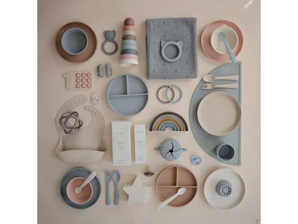 Klasický silikónový tanierik s prísavnkou je inšpirovaný deleným tanierikom Mushie. Tento nový prírastok do kolekcie silikónového riadu ponúka všetky skvelé vlastnosti pôvodného taniera bez deliacich priečok.