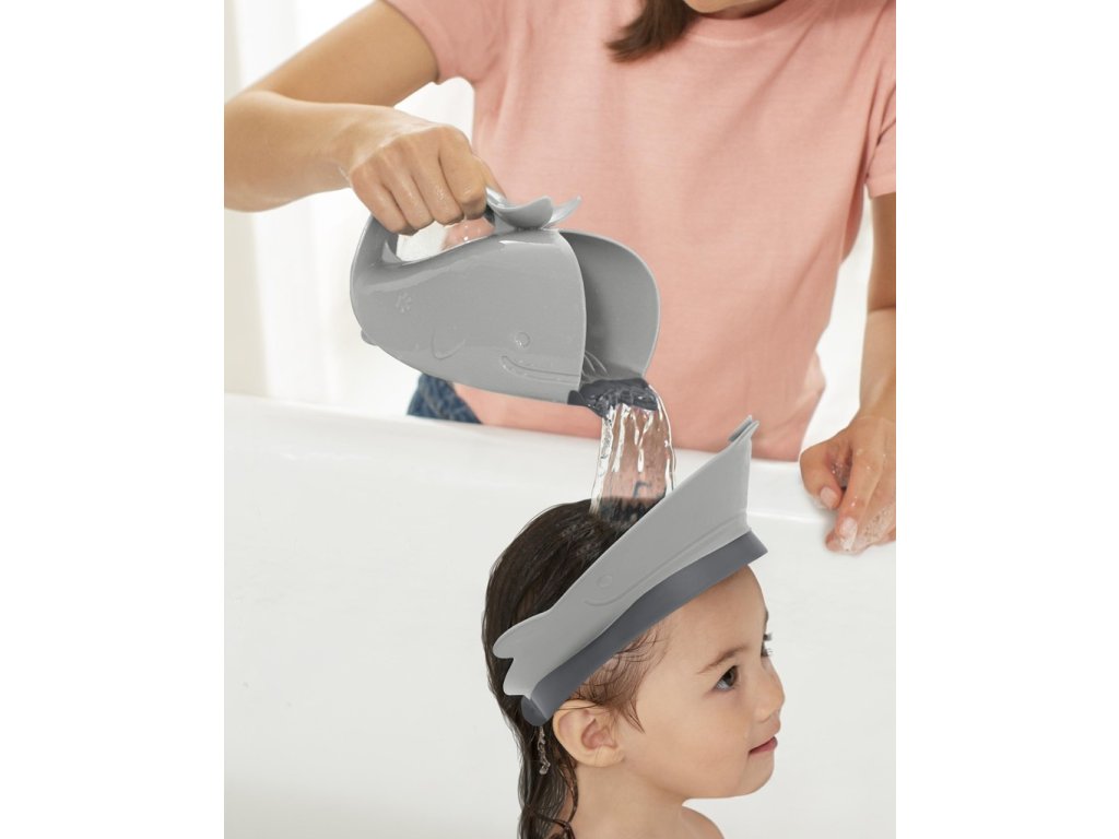 Už žiadne slzy a plač vo vani! Ochranný šilt sa vďaka pohodlnému a flexibilnému materiálu ľahko prispôsobí a vytvára priliehavé tesnenie, ktoré chráni oči a uši malých detí pred vodou a šampónom. Otvorená zadná časť uľahčuje umývanie vlasov, zatiaľ čo praktická prísavka vám umožňuje zavesiť šilt na stenu v kúpeľni, aby sa vysušil a odložil, ale zároveň bol stále po ruke.