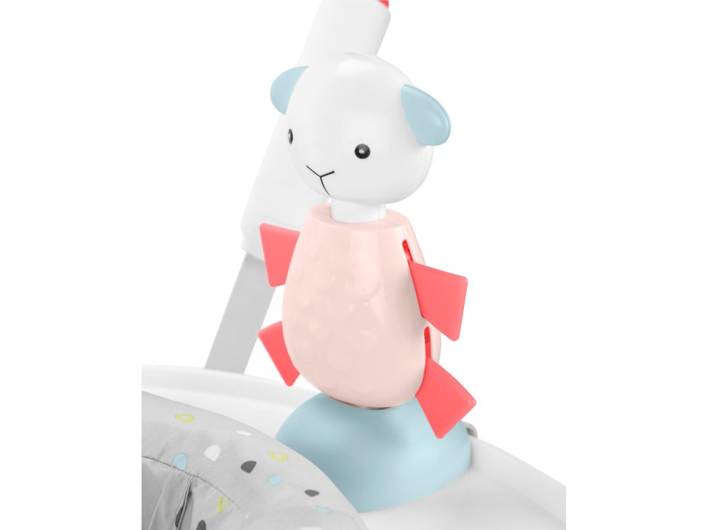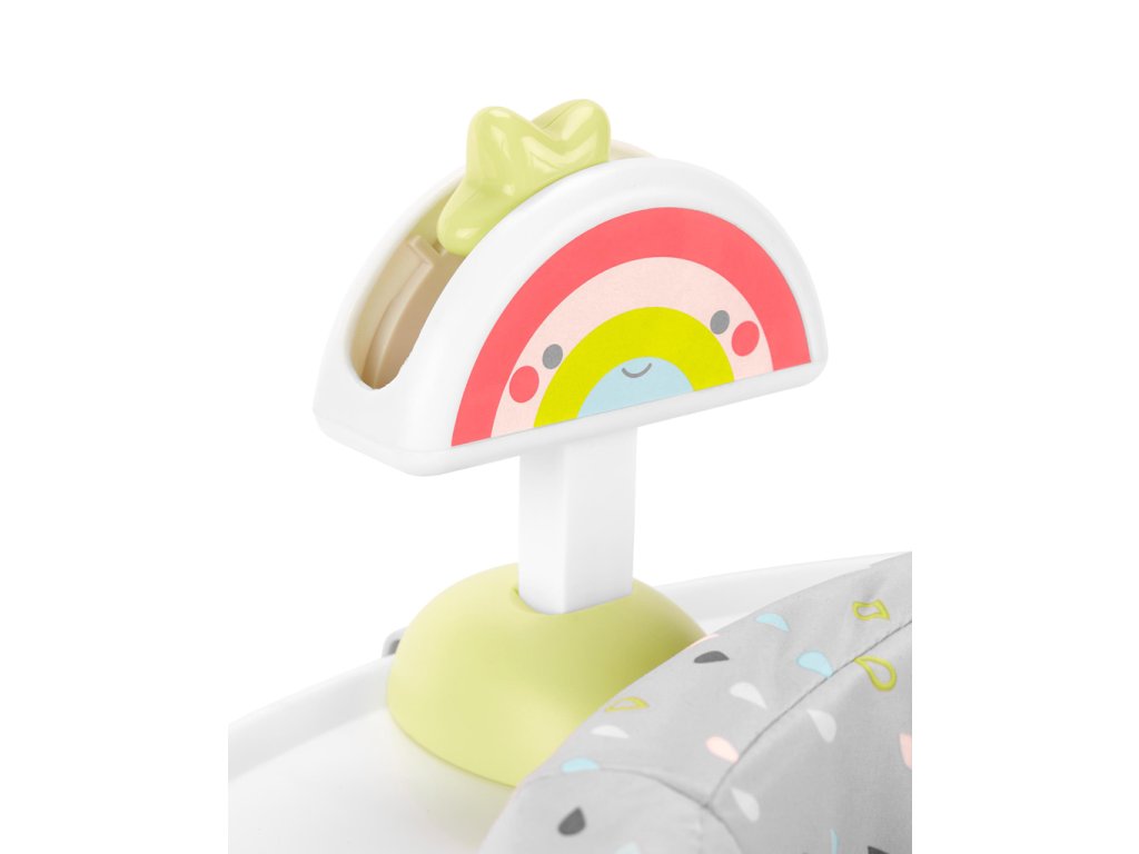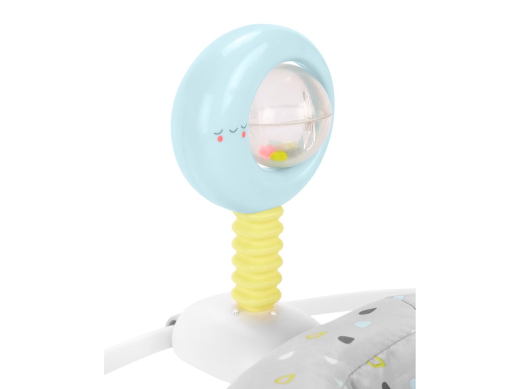 - pohyblivé hračky so systémom clip-on: dúha s pohybujúcou sa hviezdou, hrkálka v tvare mesiaca, tlieskajúce vtáčiky, skákajúce jahniatko;