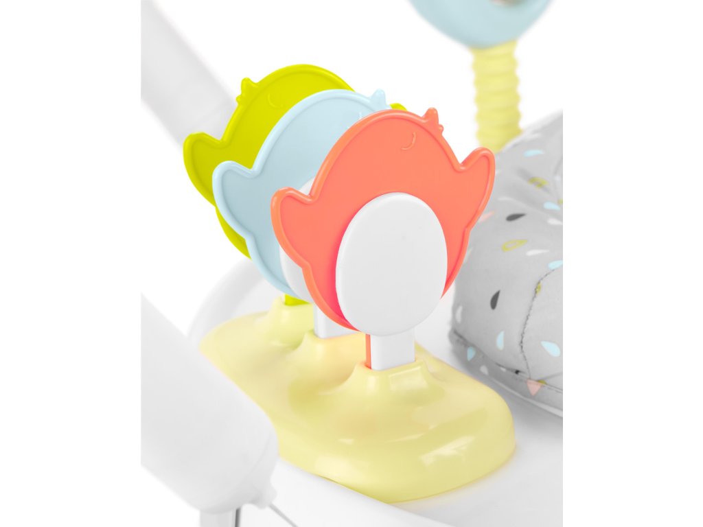 Je vybavené rotujúcim 360° sedadlom, takže dieťatko môže preskúmať každú stranu. Pohyblivé hračky so systémom clip-on podporujú vývoj a spestrujú aktivitu dieťatka.