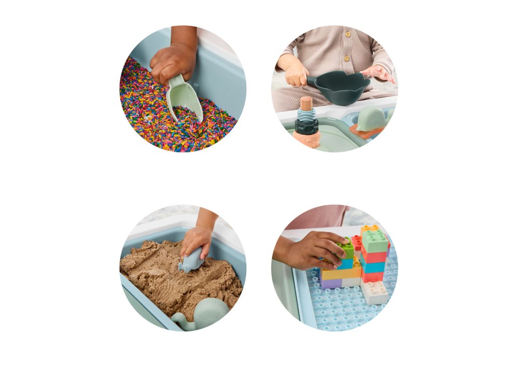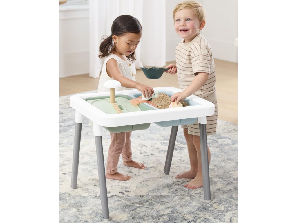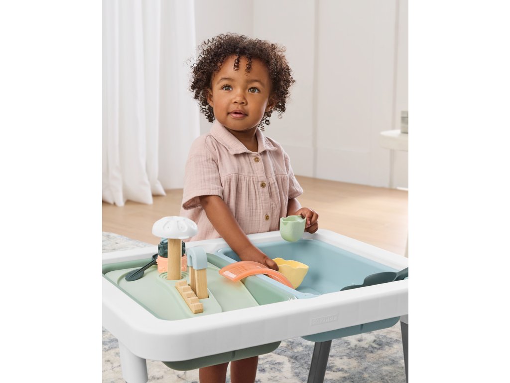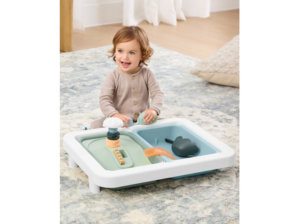 Skip Hop 24-dielna súprava zmyslového stolíka, vyvinutá v spolupráci s odborníkom na zmyslové hry, ponúka detičkám neobmedzené možnosti objavovania, učenia, tvorenia a hrania. Skoré objavovanie, navrhnuté tak, aby rástlo s vaším dieťatkom, začína hraním na podlahe a priloženými nástrojmi (drevené kliešte a valčeky, naberačky, lopatka a ďalšie) – dajú sa použiť mnohými spôsobmi. Keď vaše dieťatko vyrastie, pridajte k nemu nohy stola a experimentujte s výplňami, ako je piesok, suché cestoviny, voda, hlina a ďalšie nájdené predmety. Kopať, triediť, vyrezávať, naberať, nalievať a ešte viac – napnite svoju predstavivosť a vytvorte praktickú krajinu pre zmyslové hry a objavovanie. Potrebujete nápady? Priložený sprievodca aktivitami ponúka množstvo spôsobov, ako vás a vaše deti inšpirovať na roky učenia a zábavy.