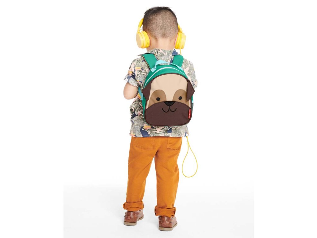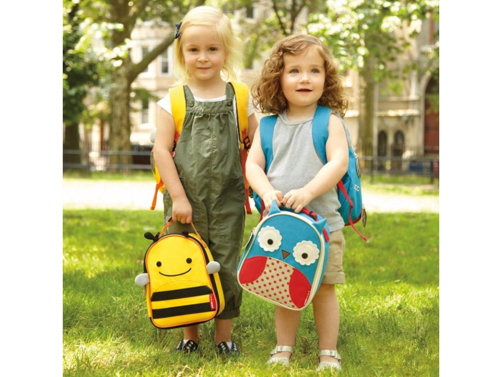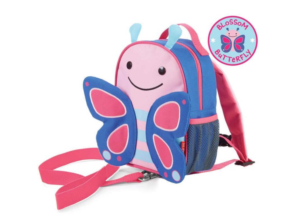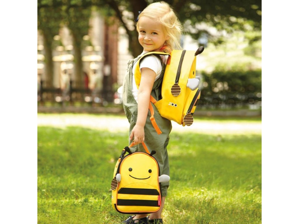 Upravte oba ramenné popruhy na ramená dieťaťa. Upnite hrudný pásik / zacvaknite sponu. Nastavte správnu dĺžku ramenných popruhov podľa postavy vášho dieťaťa. Podľa potreby pripnite bezpečnostný pásik pomocou striebornej karabínky, ktorú pripevníte k striebornému pútku v tvare "D". Krásny batôžtek v štýle Skip Hop s bezpečnostným pásikom. Pásik je možné podľa potreby odopnúť / pripnúť. Batôžtek má polstrované nastaviteľné ramenné popruhy, ucho na prenášanie, hlavné vrecko na zips, sieťovanú bočnú kapsičku na fľašu, aby sa batôžtek nestratil. Jednoduchá údržba. Obsahuje 0% BPA, bez ftalátov.