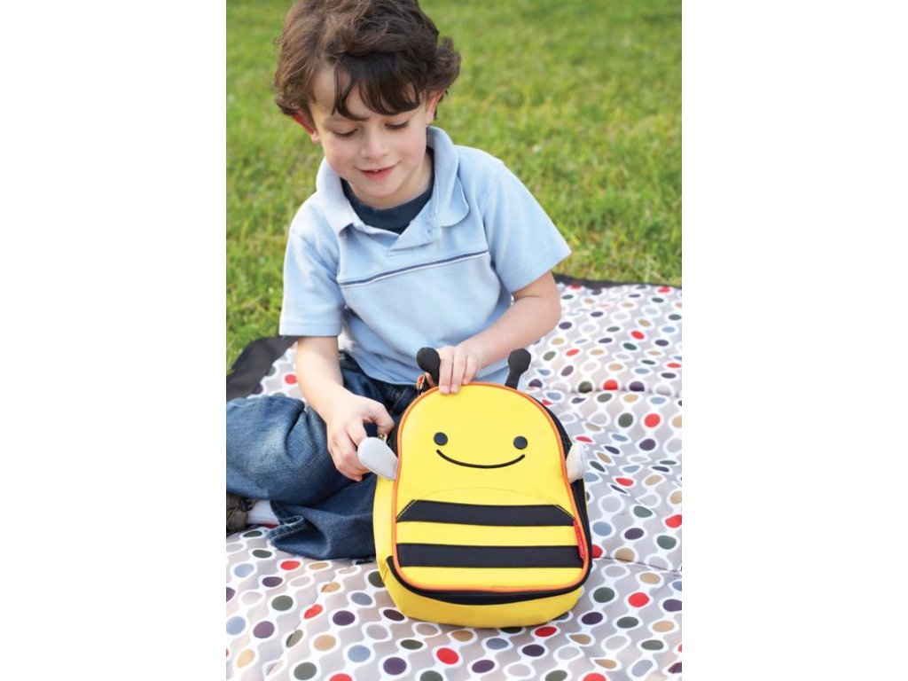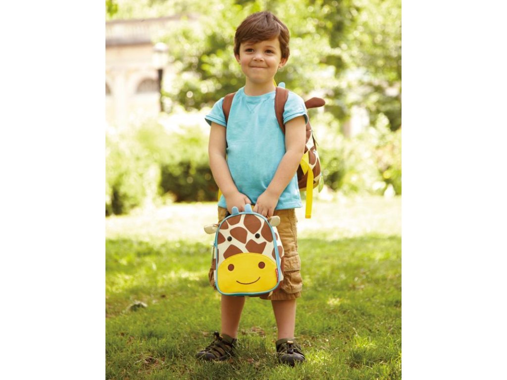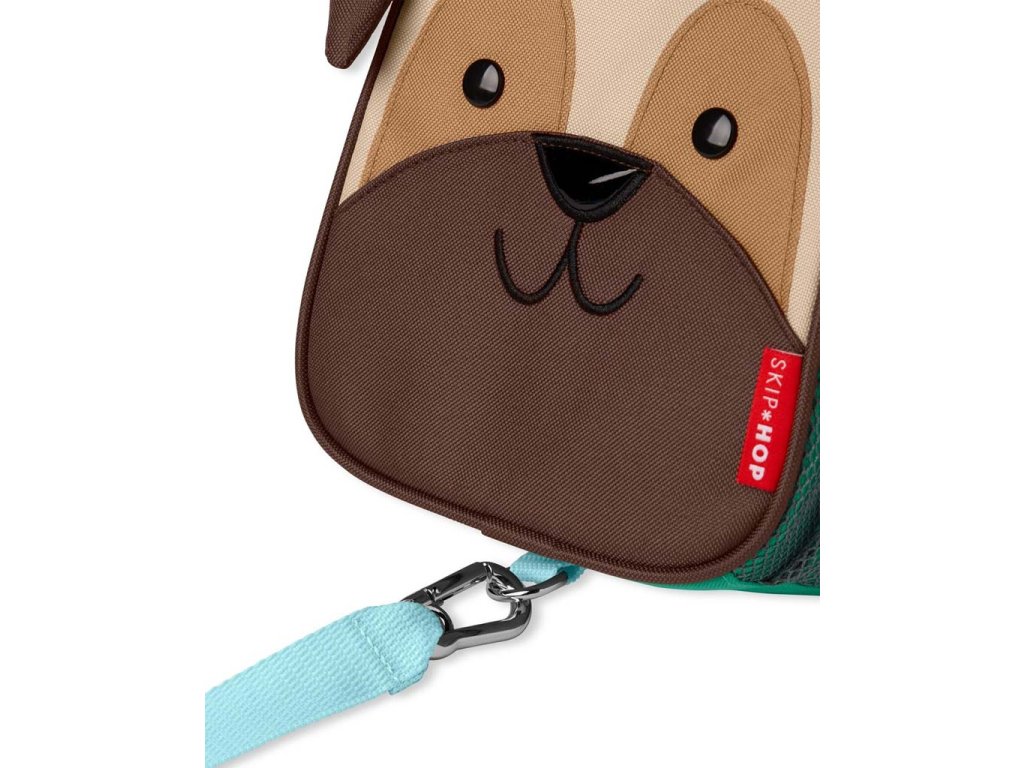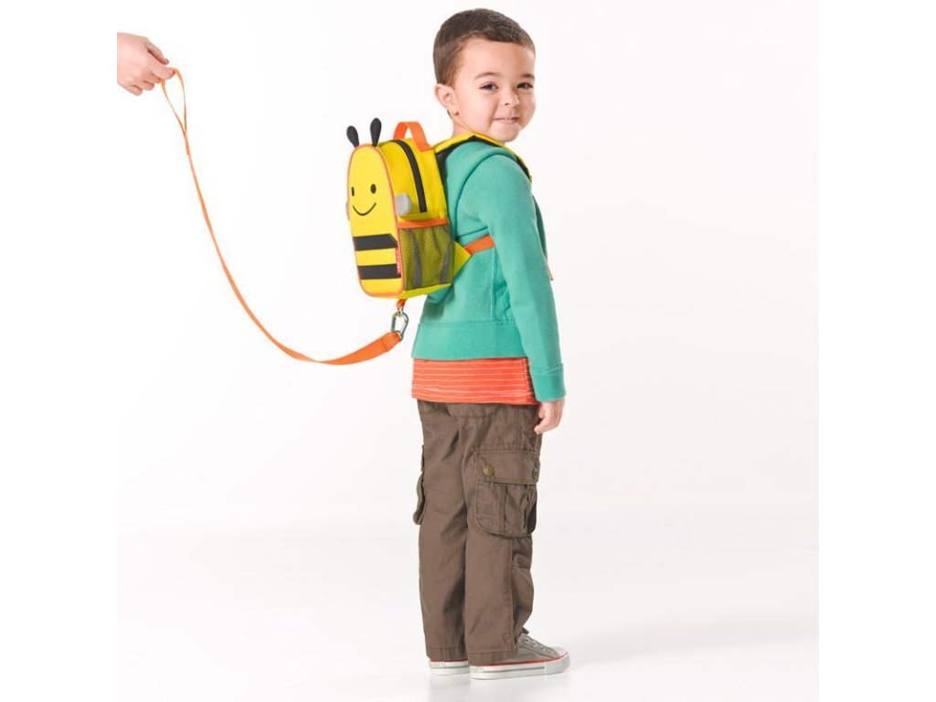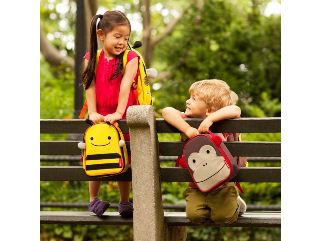 Upravte oba ramenné popruhy na ramená dieťaťa. Upnite hrudný pásik / zacvaknite sponu. Nastavte správnu dĺžku ramenných popruhov podľa postavy vášho dieťaťa. Podľa potreby pripnite bezpečnostný pásik pomocou striebornej karabínky, ktorú pripevníte k striebornému pútku v tvare "D". Krásny batôžtek v štýle Skip Hop s bezpečnostným pásikom. Pásik je možné podľa potreby odopnúť / pripnúť. Batôžtek má polstrované nastaviteľné ramenné popruhy, ucho na prenášanie, hlavné vrecko na zips, sieťovanú bočnú kapsičku na fľašu, aby sa batôžtek nestratil. Jednoduchá údržba. Obsahuje 0% BPA, bez ftalátov.