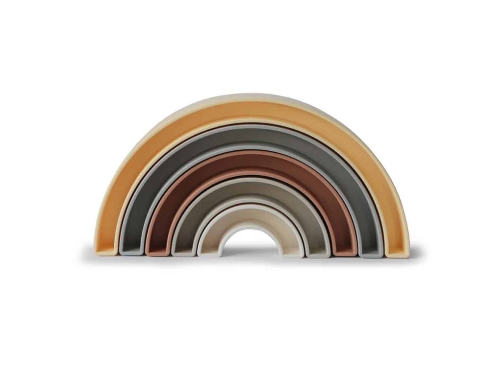 Krásna a hravá dúhová skladačka v rôznych farebných prevedeniach od Mushie!
