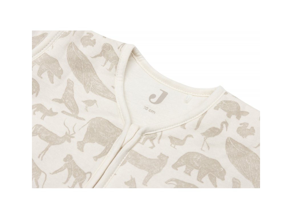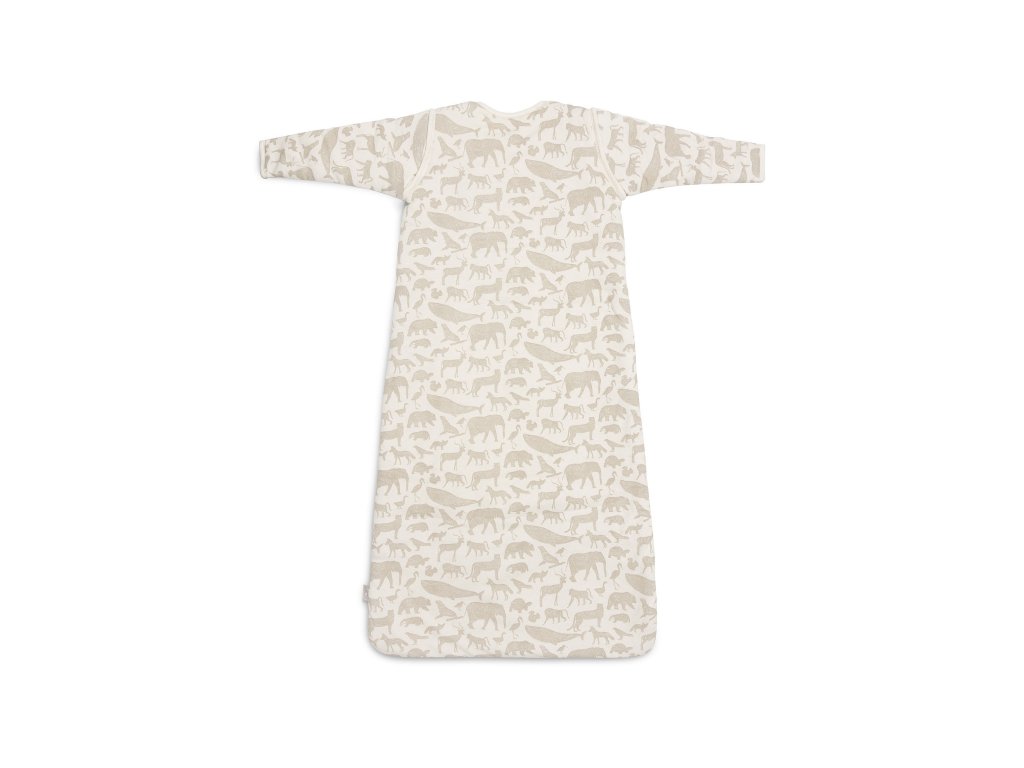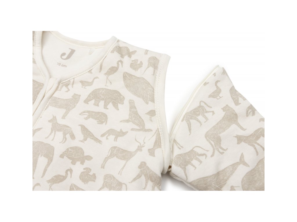 Praktický spací vak s oddeliteľnými rukávmi ponúka variabilitu pri použití podľa počasia a teploty v miestnosti. Vďaka jemnej výplni je vhodný na použitie namiesto perinky. Spací vak zaistí, že sa dieťa v noci neodkope a bude tak po celú dobu spánku v pohodlí a teple bez rizika prechladnutia. Kryté zipsy v prieramkoch umožňujú ľahké oddelenie rukávov, pokiaľ chcete spací vak používať v teplejšom prostredí bez rukávov. Zips na prednej strane umožňuje ľahké vloženie dieťaťa do spacieho vaku a prebaľovanie počas spania.