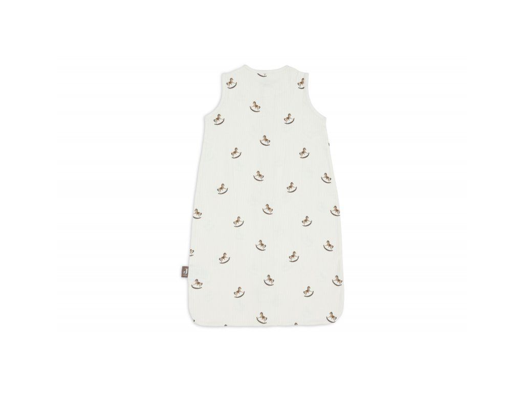 Ľahký spací vak z jemnej 100% bavlny má zips na prednej strane pre ľahké vloženie dieťaťa do spacieho vaku aj prebaľovanie počas spania.
