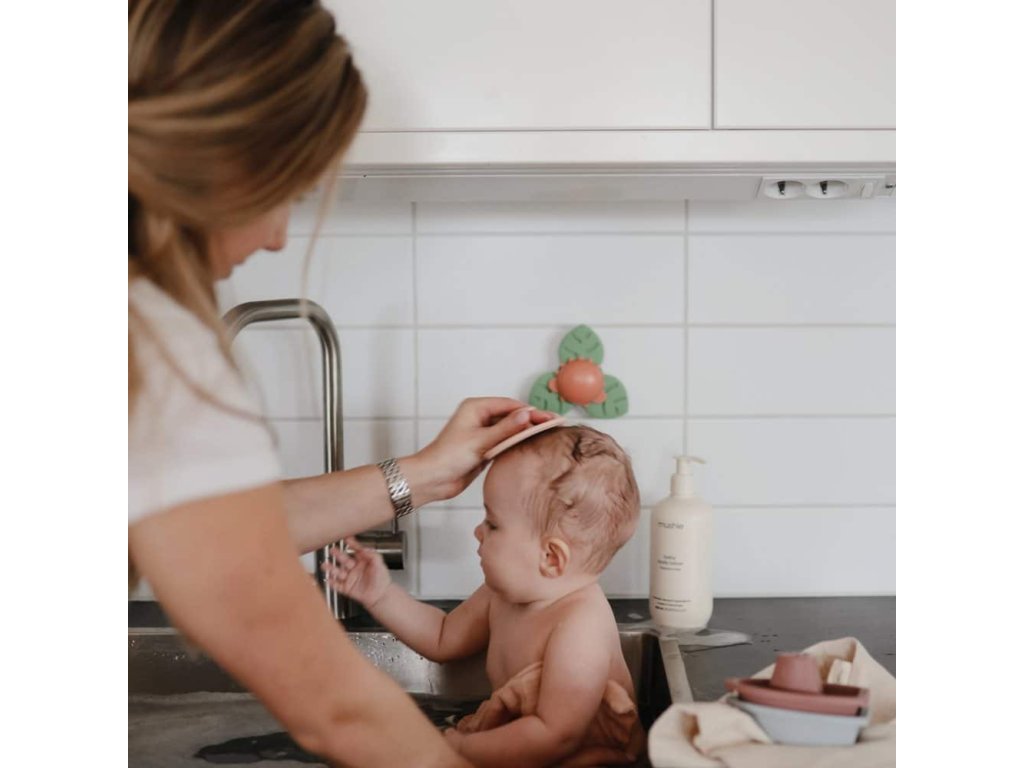 Hračka je vyrobená z plastu a potravinárskeho silikónu a je navrhnutá tak, aby deťom vytvárala zmyslové zážitky. Má tiež prísavku, ktorá zaisťuje, že hračka zostane na svojom mieste – to zabraňuje náhodným pádom a podporuje samostatnú hru. Vyskúšajte funkciu prísavky na dverách, stoličkách, vo vani atď.