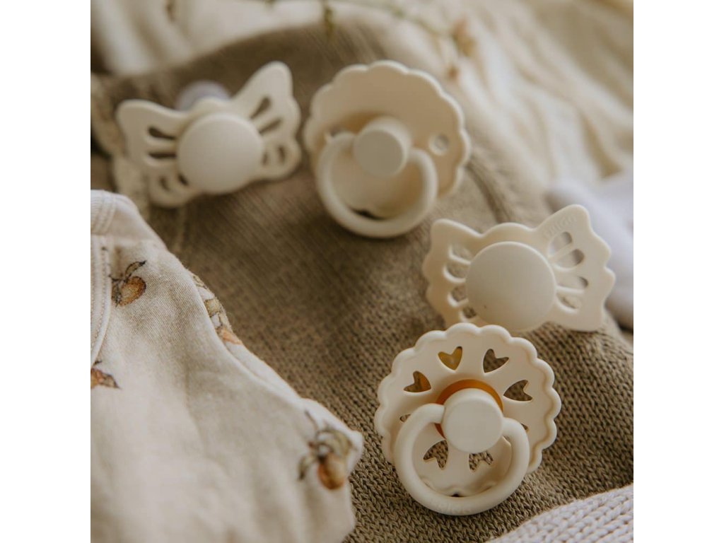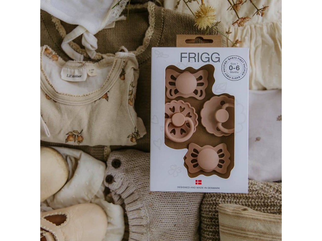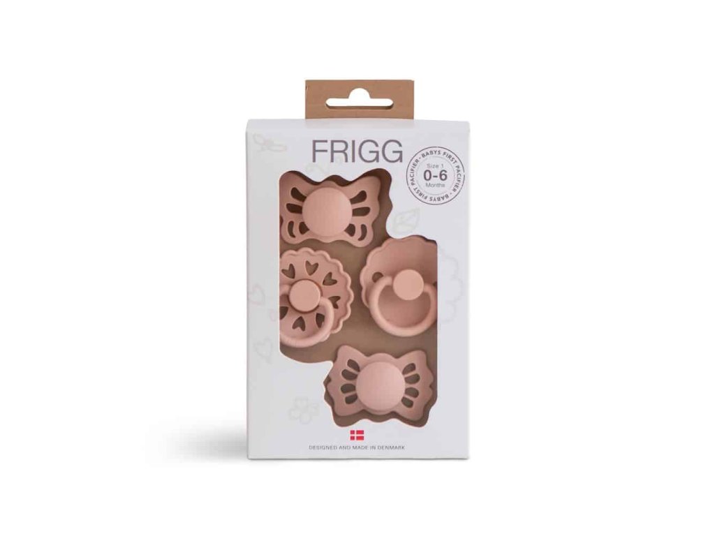 Pre čerstvých rodičov môže byť ťažké zistiť, ktorý cumlík je pre ich drobca ten najlepší. Súprava „prvý cumlík pre bábätko“ od FRIGG pozostávajúca zo 4 rôznych cumlíkov FRIGG s rôznymi materiálmi a tvarmi bradaviek dáva rodičom možnosť vyskúšať si rôzne cumlíky, aby zistili, ktorý sa ich bábätku páči najviac. 4-balenie cumlíkov FRIGG Baby's First– FLORAL HEART je dostupné v 2 farbách: Blush a Cream.