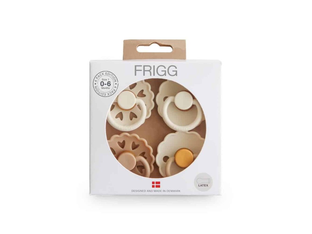 Všetky cumlíky v 4-baleniach FRIGG sú cumlíky s okrúhlym tvarom cumlíka. Okrúhly cumlík tvarom aj materiálom pripomína materinský prsník. Vysvetlením je, že keď sa dieťa chystá dojčiť, jazyk sa zroluje okolo bradavky a vytvorí podtlak, ktorý spôsobí tok mlieka. Keď dieťa saje okrúhly cumlík, gúľa okolo neho jazyk rovnako.