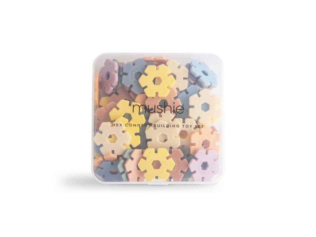 Súprava hračiek Mushie's Hex Connect umožňuje deťom hravo sa učiť a zároveň rozvíjať svoje zručnosti pri riešení problémov!
