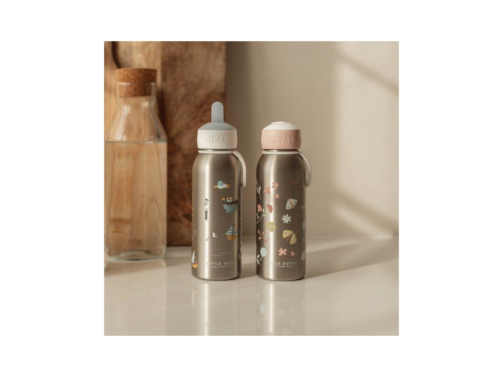 Termofľaša je súčasťou dizajnovej kolekcie Little Dutch Kvety a motýle, v ktorej nájdete jedálenské doplnky pre detské stolovanie, posteľnú bielizeň, dekoratívne doplnky do detskej izby aj drevené a plyšové hračky.