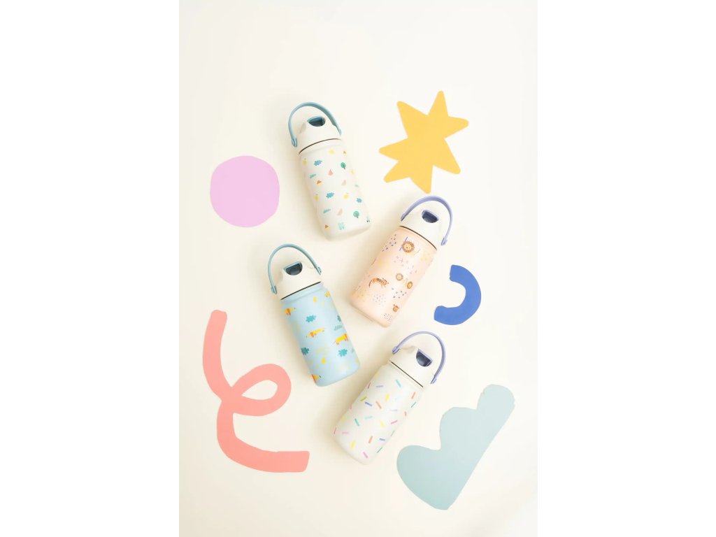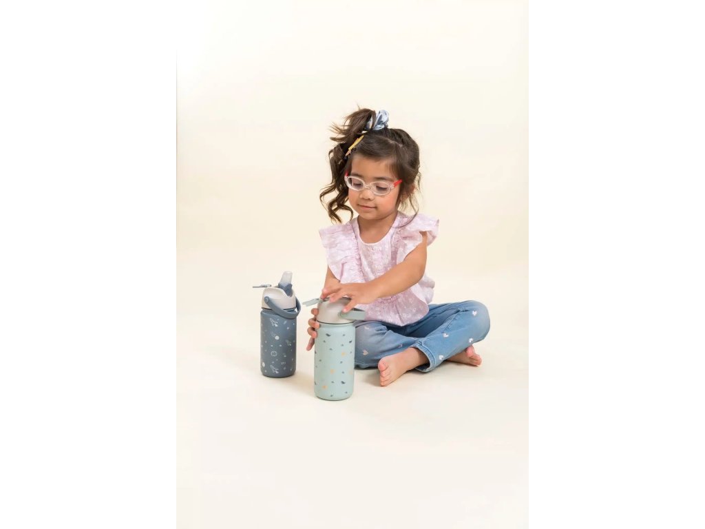 Nová a vylepšená nerezová fľaša THE COTTON CLOUD je ideálna do škôlky, školy alebo na výlety. Táto termoska s typickým vzorom THE COTTON CLOUD udrží nápoje v lete nádherne chladné a v zime teplé. Fľaša je vyrobená z odolnej, vysoko kvalitnej nehrdzavejúcej ocele 18/8, je nepriepustná pri otvorení a zatvorení. Má tiež silikónovú rukoväť pre ľahké prenášanie. Slamka je vyrobená z mäkkého a kvalitného silikónu LFGB. Jednoduché použitie: zahryznite a vypite!